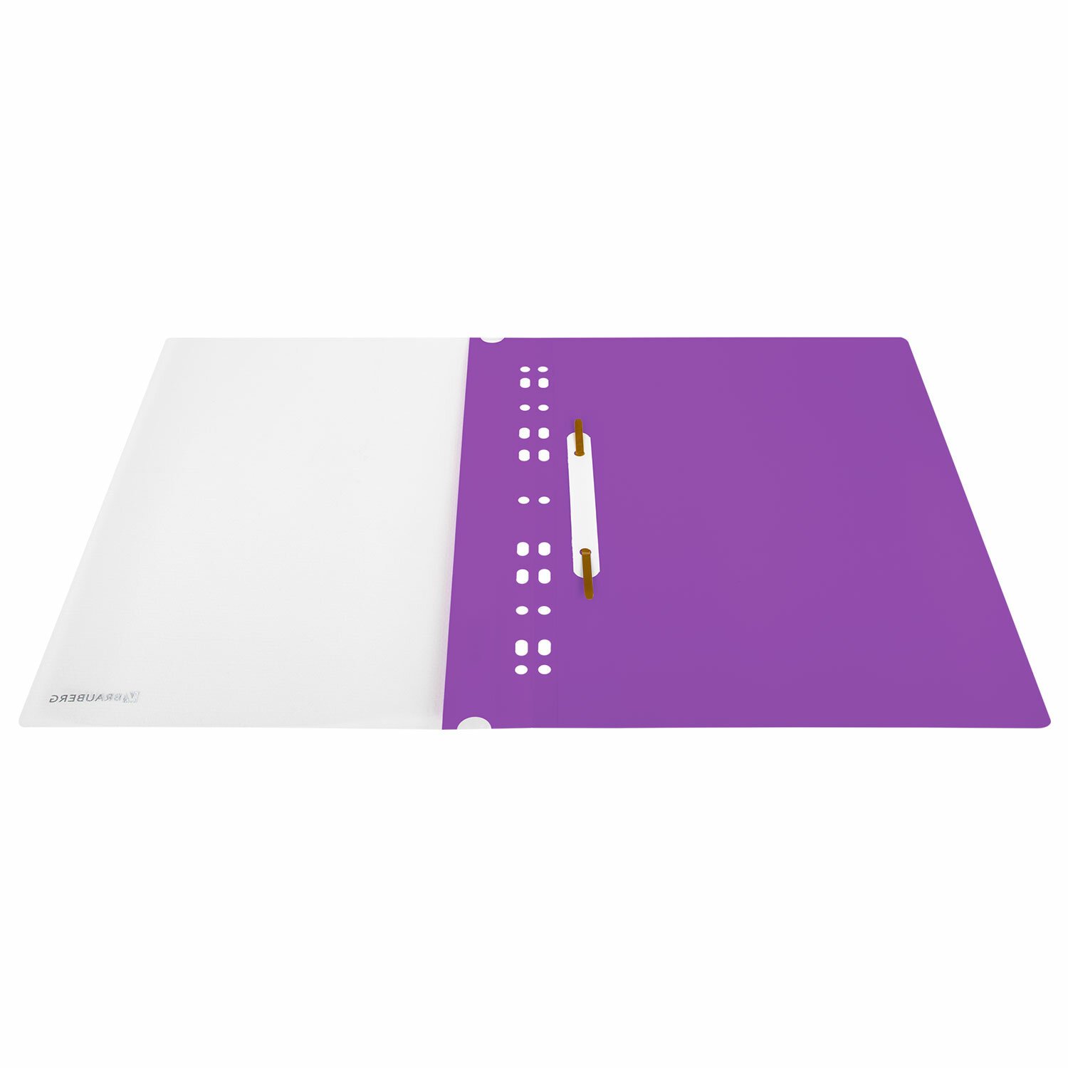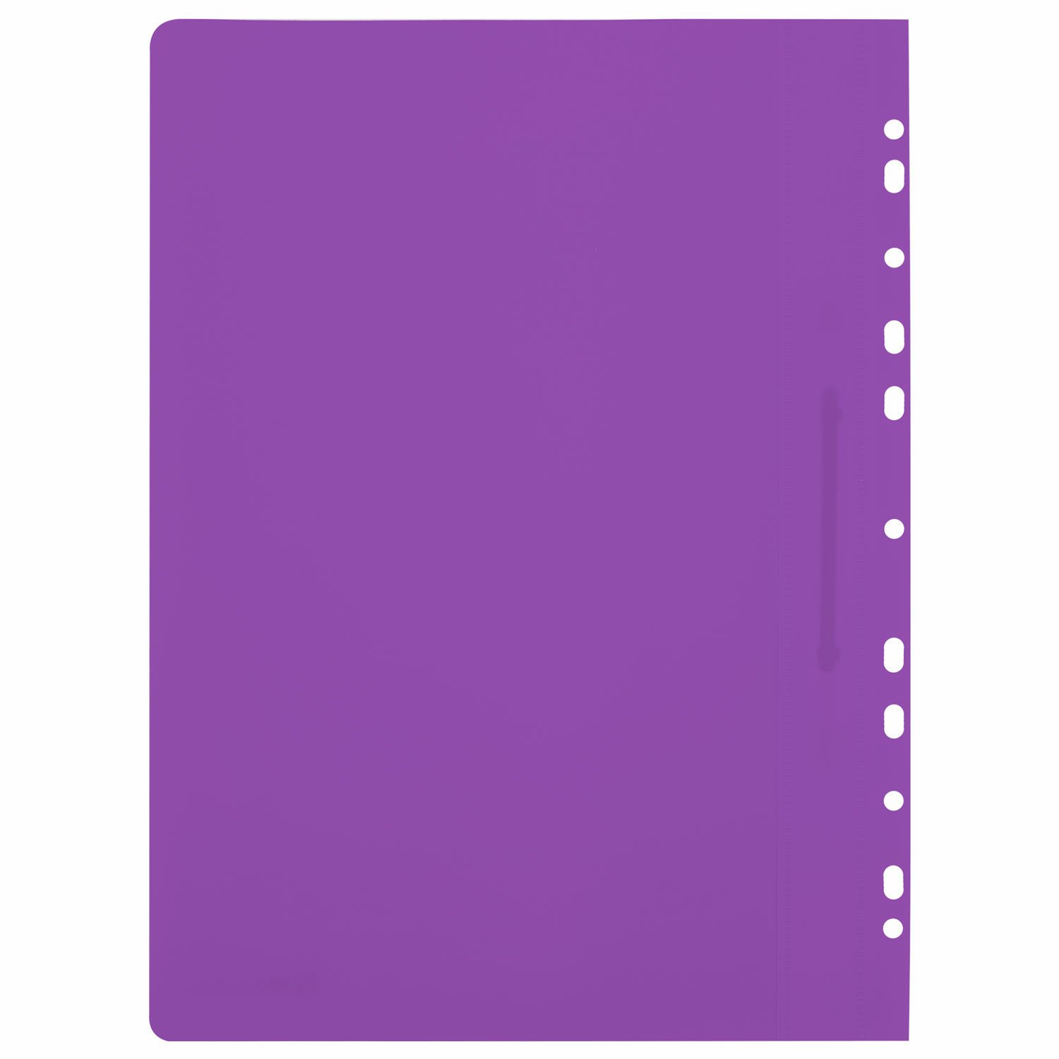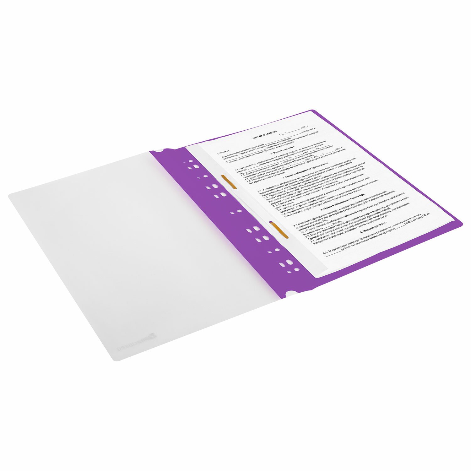 Прозрачный верхний лист позволяет идентифицировать подшитый документ, не открывая скоросшиватель. Сменный пластиковый корешок помогает структурировать информацию. Благодаря фактуре "песок" и яркому фиолетовому цвету обложки папка никогда не затеряется на полке.