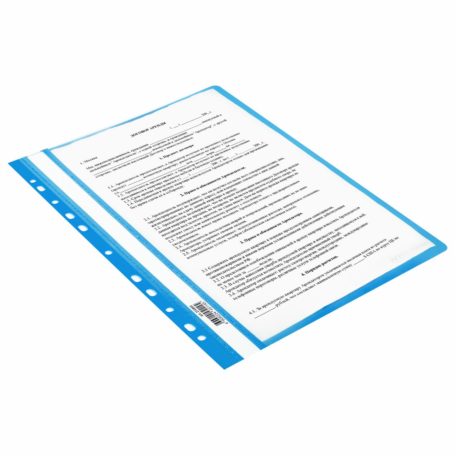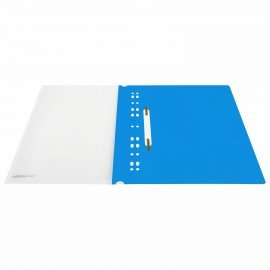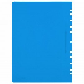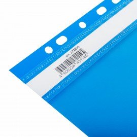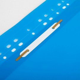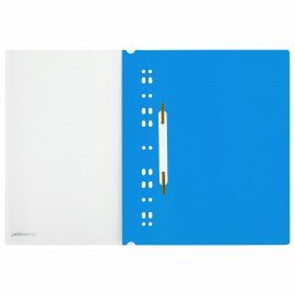 Прозрачный верхний лист позволяет идентифицировать подшитый документ, не открывая скоросшиватель. Сменный пластиковый корешок помогает структурировать информацию. Благодаря фактуре "песок" и яркому синему цвету обложки папка никогда не затеряется на полке.