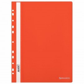 Скоросшиватель пластиковый с перфорацией BRAUBERG, А4, 140/180 мкм, красный, 226582