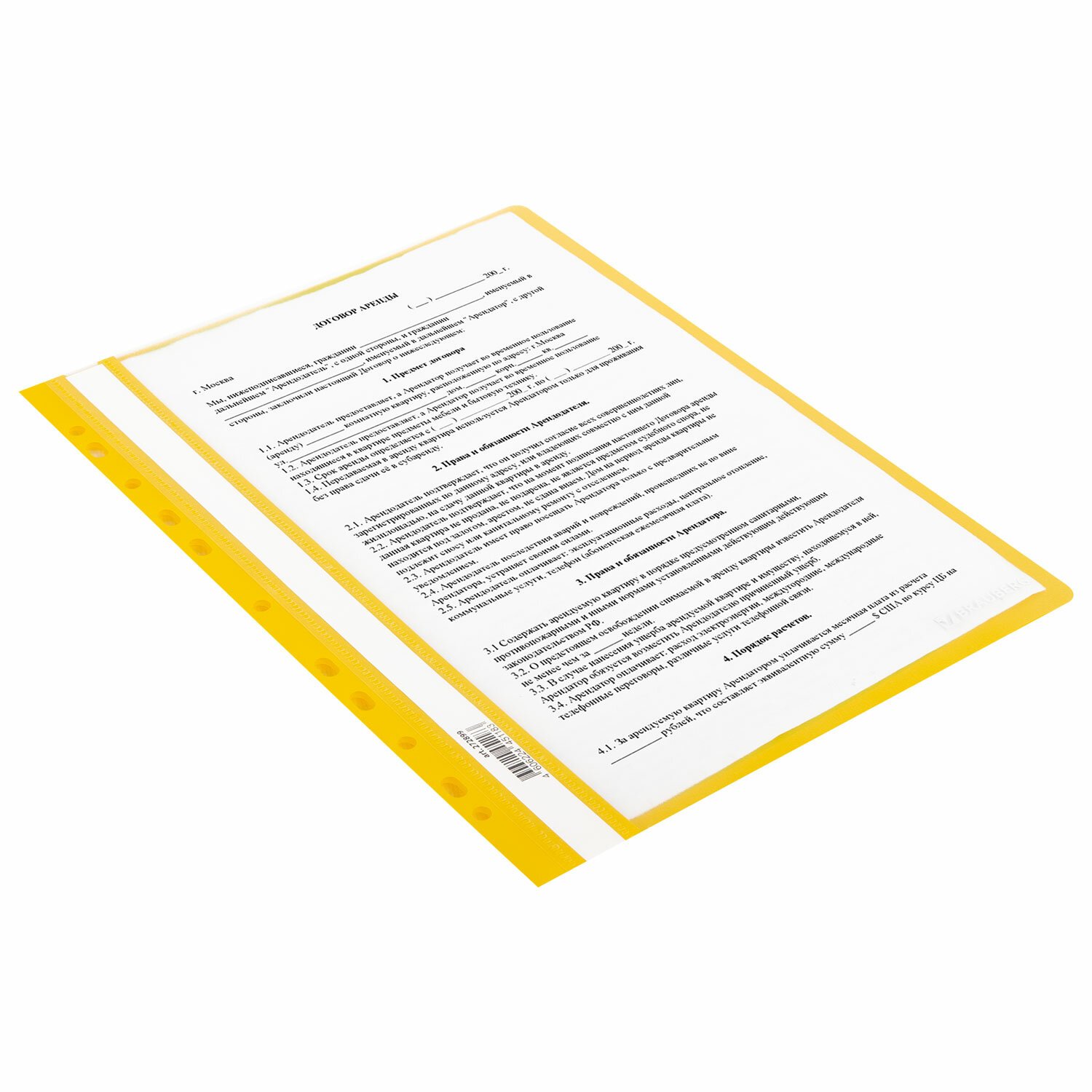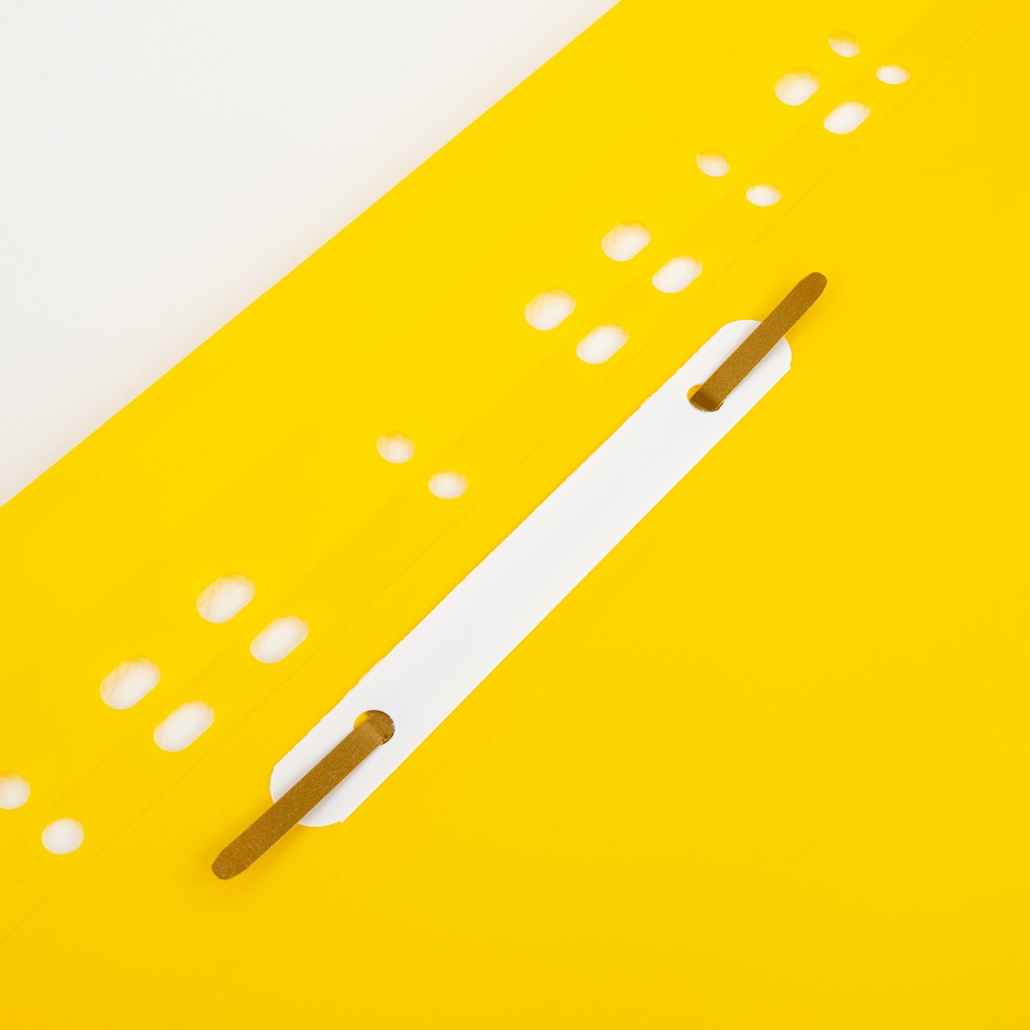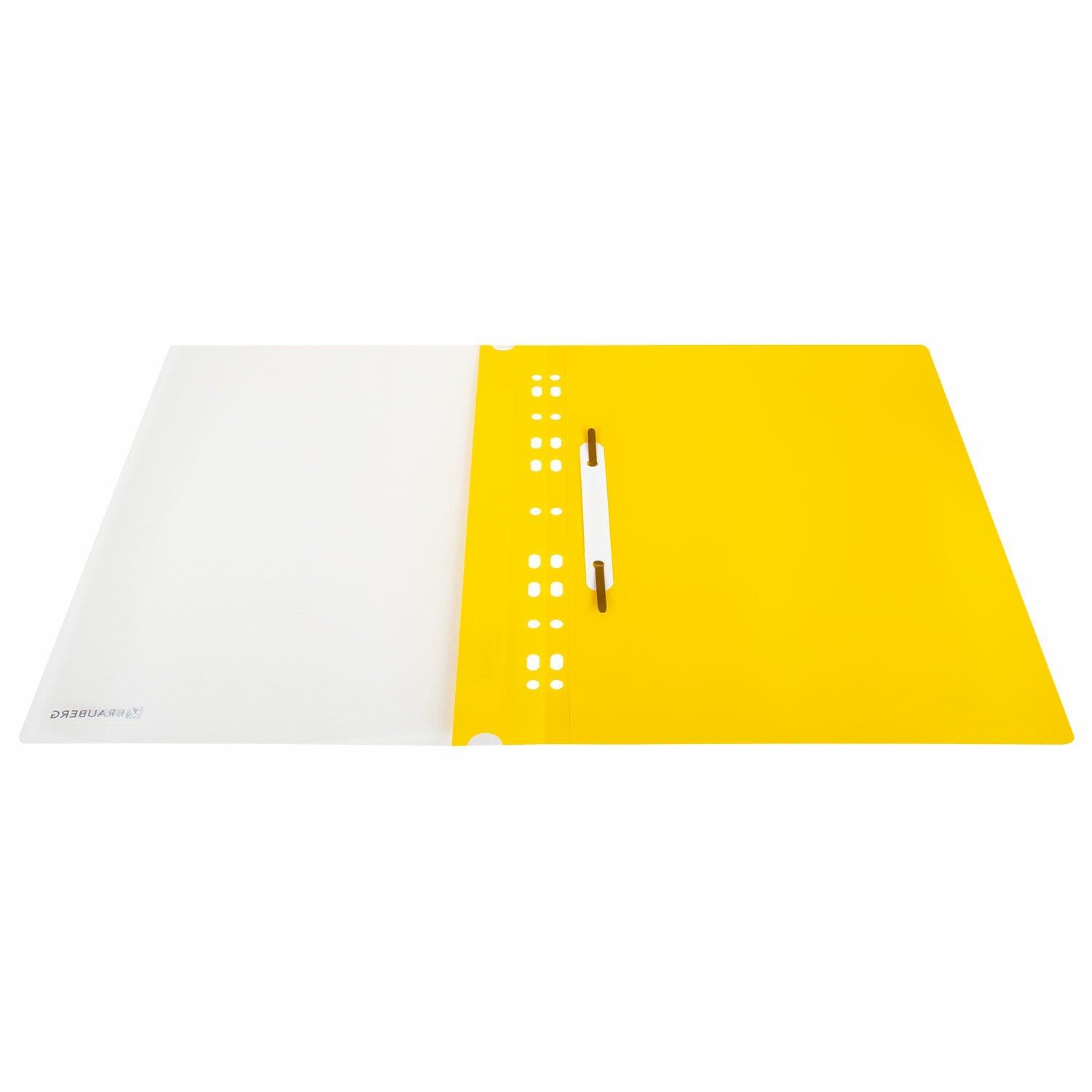 Прозрачный верхний лист позволяет идентифицировать подшитый документ, не открывая скоросшиватель. Сменный пластиковый корешок помогает структурировать информацию. Благодаря фактуре "песок" и яркому жёлтому цвету обложки папка никогда не затеряется на полке.
