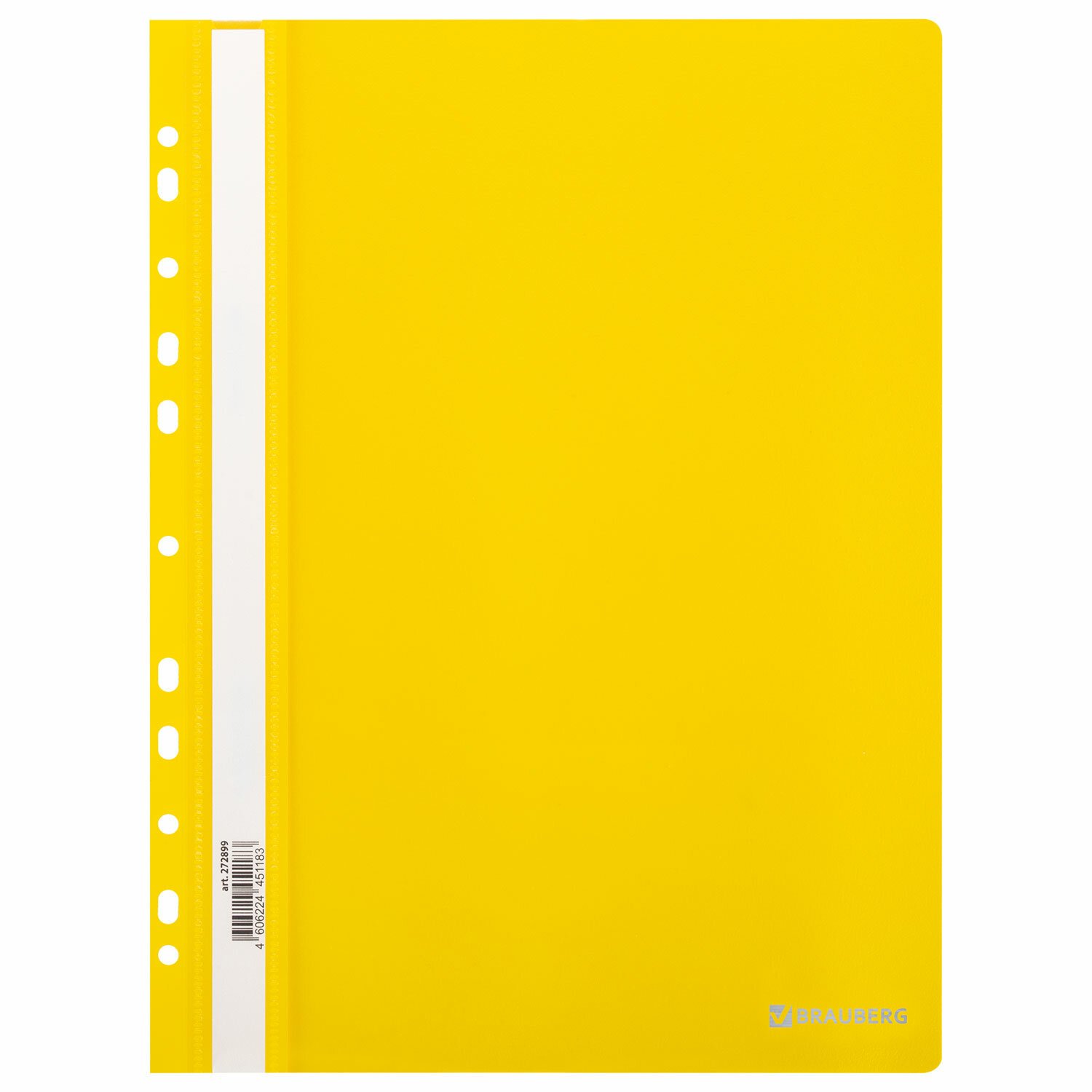 Скоросшиватель пластиковый с перфорацией BRAUBERG EXTRA, А4, 140/180 мкм, желтый, 272899