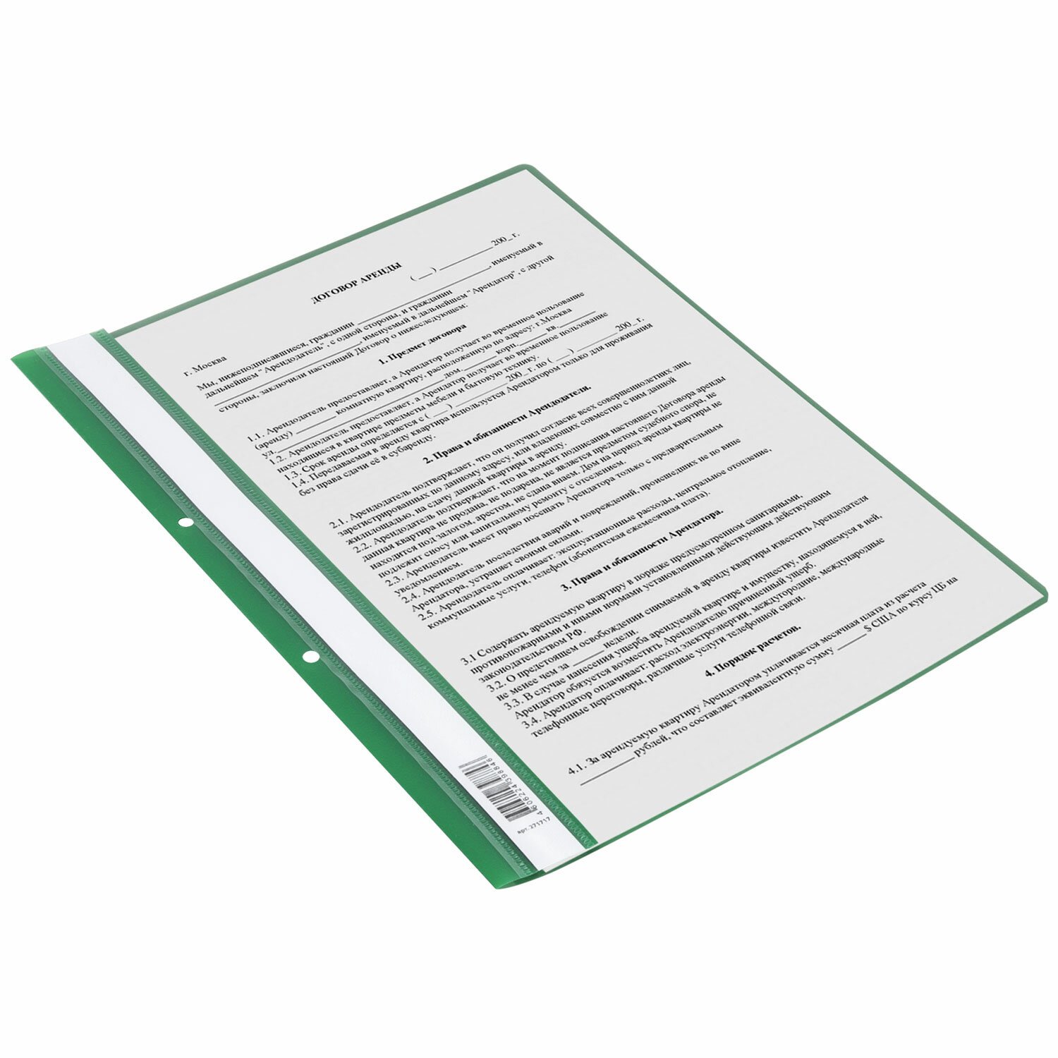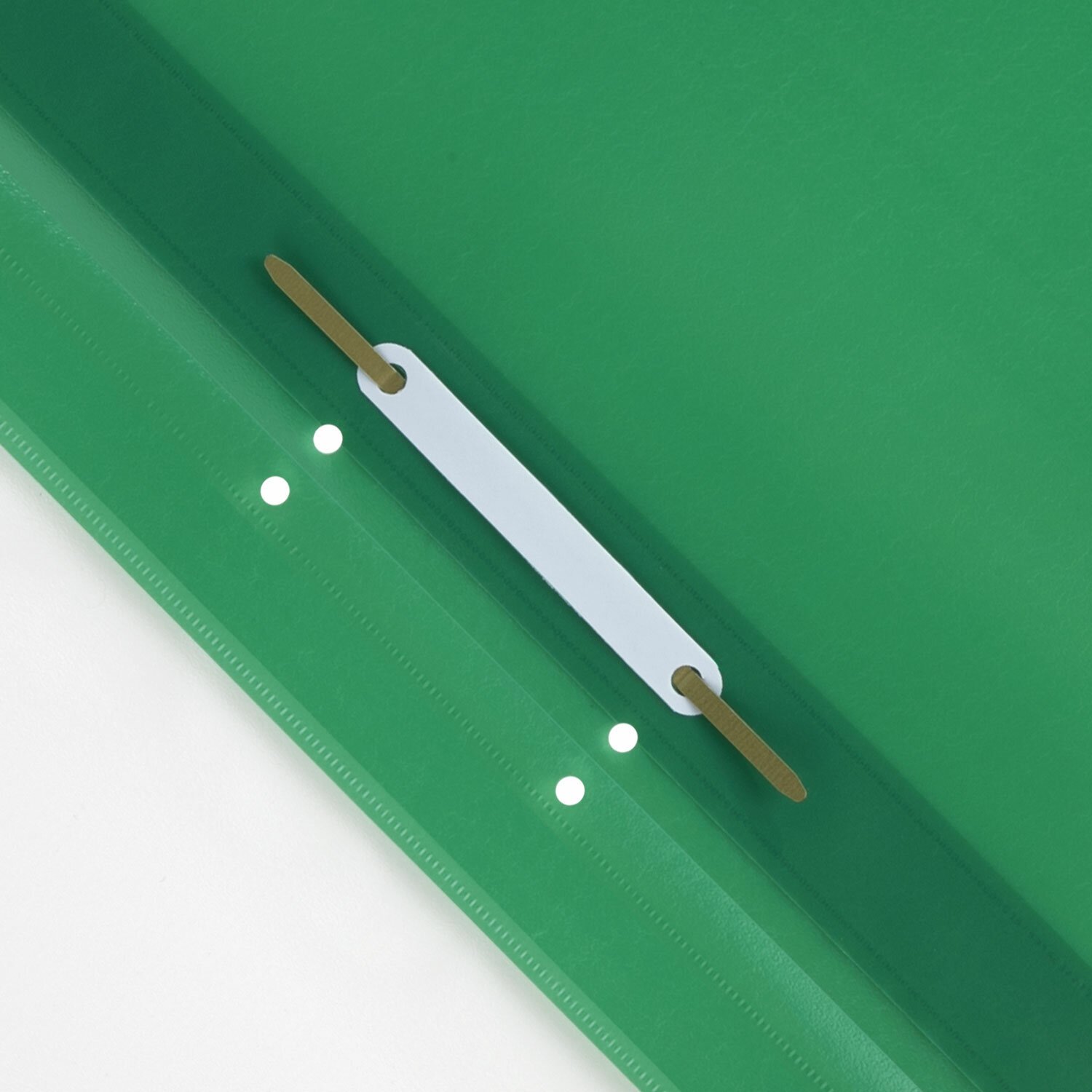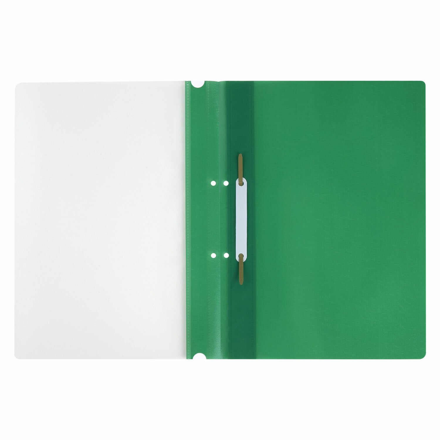 Фиксирует до 100 листов формата А4. Толщина пластика верхнего листа составляет 100 мкм, а нижнего - 120 мкм. Предельно простой механизм подшивки: металлические усики и пластиковая планка для надежной фиксации документов. Скоросшиватель изготовлен из качественного полипропилена. Прозрачный верхний лист позволяет определить содержимое, не открывая скоросшиватель, который к тому же снабжен сменным пластиковым корешком, что дает возможность структурировать информацию. Кроме того, корешок скоросшивателя снабжен перфорацией, что позволяет подшивать его в папки с любым механизмом. Благодаря насыщенному зеленому цвету обложки папка никогда не затеряется на полке.