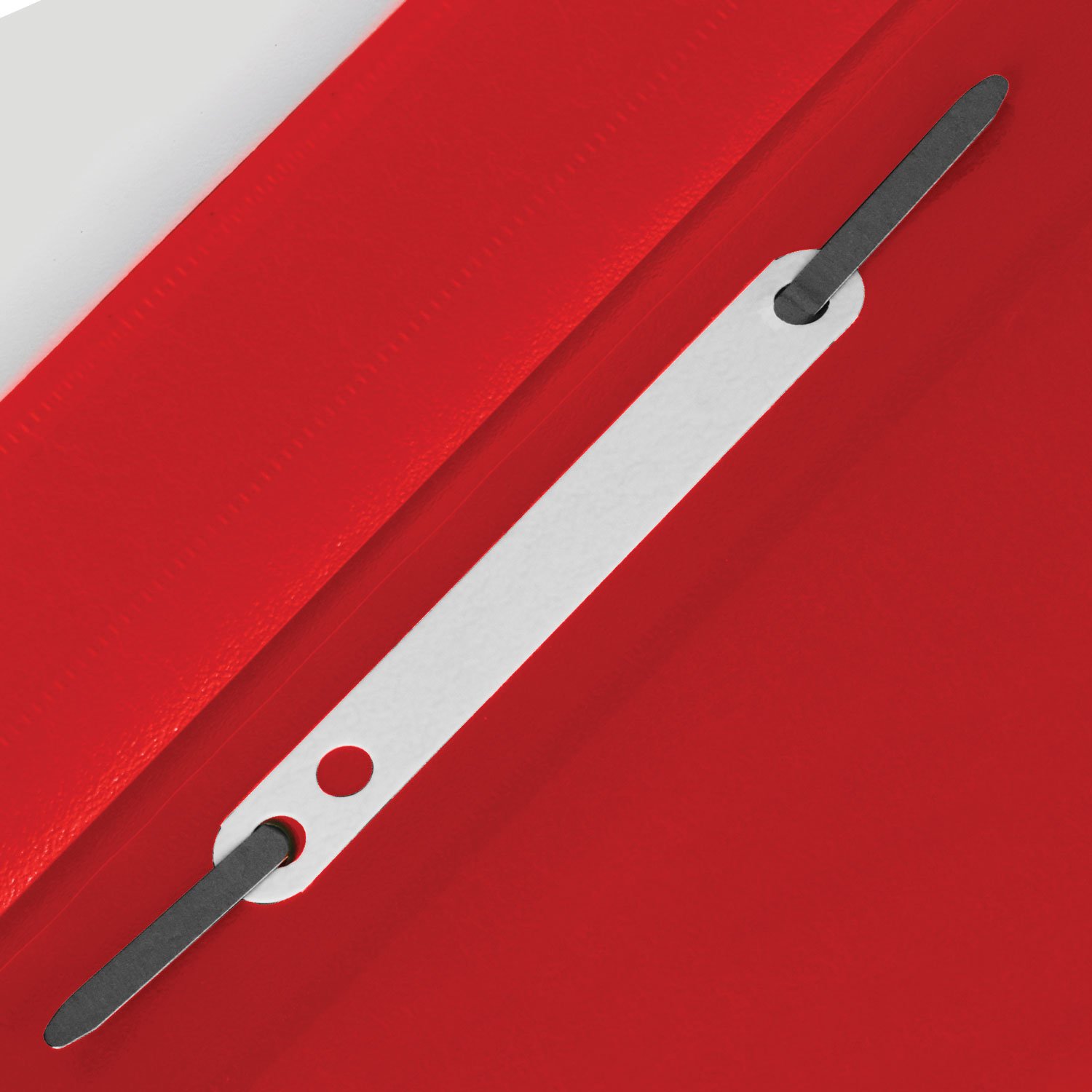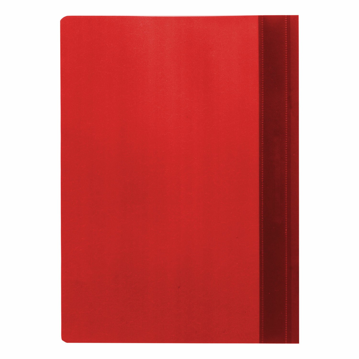 Фиксирует до 100 листов формата А4. Толщина пластика верхнего листа составляет 100 мкм, а нижнего - 120 мкм. Предельно простой механизм подшивки: металлические усики и пластиковая планка для надежной фиксации документов. Скоросшиватель изготовлен из качественного полипропилена. Прозрачный верхний лист позволяет определить содержимое, не открывая скоросшиватель, который к тому же снабжен сменным пластиковым корешком, что дает возможность структурировать информацию. Благодаря гладкой фактуре и яркому красному цвету обложки папка никогда не затеряется на полке.