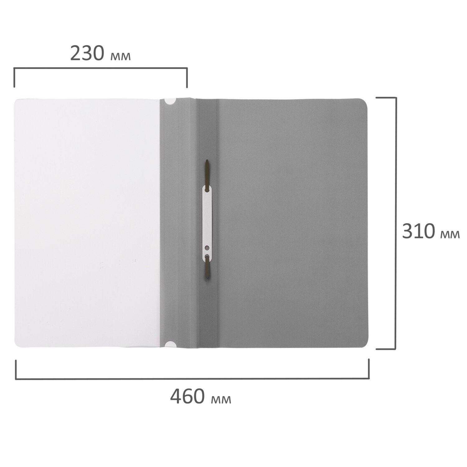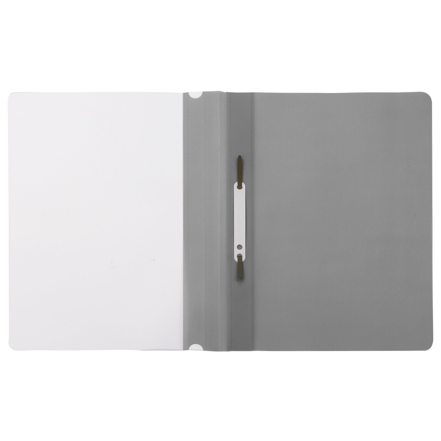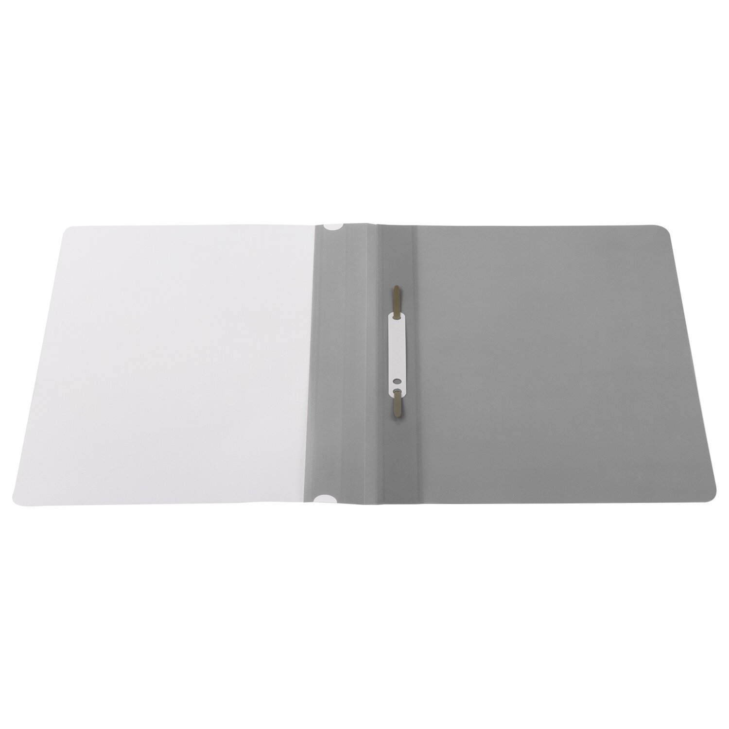 Фиксирует до 100 листов формата А4. Толщина пластика верхнего листа составляет 100 мкм, а нижнего - 120 мкм. Предельно простой механизм подшивки: металлические усики и пластиковая планка для надежной фиксации документов. Скоросшиватель изготовлен из качественного полипропилена. Прозрачный верхний лист позволяет определить содержимое, не открывая скоросшиватель, который к тому же снабжен сменным пластиковым корешком, что дает возможность структурировать информацию. Благодаря гладкой фактуре и строгому серому цвету обложки папка никогда не затеряется на полке.