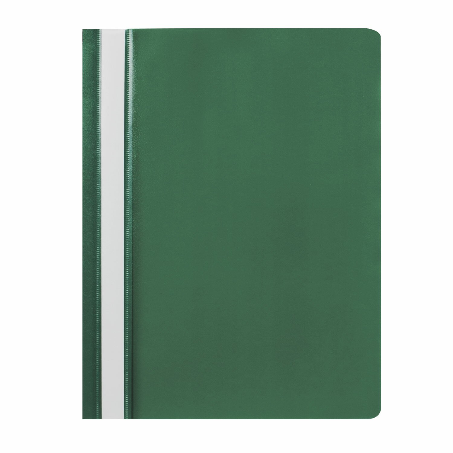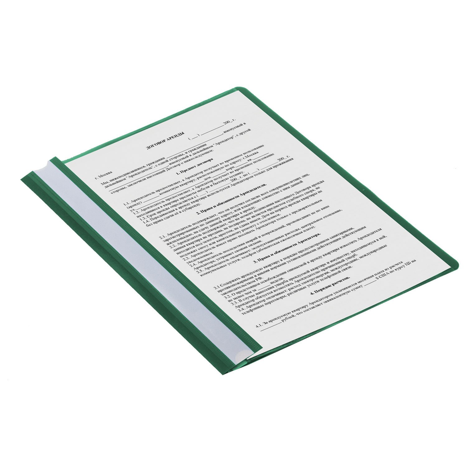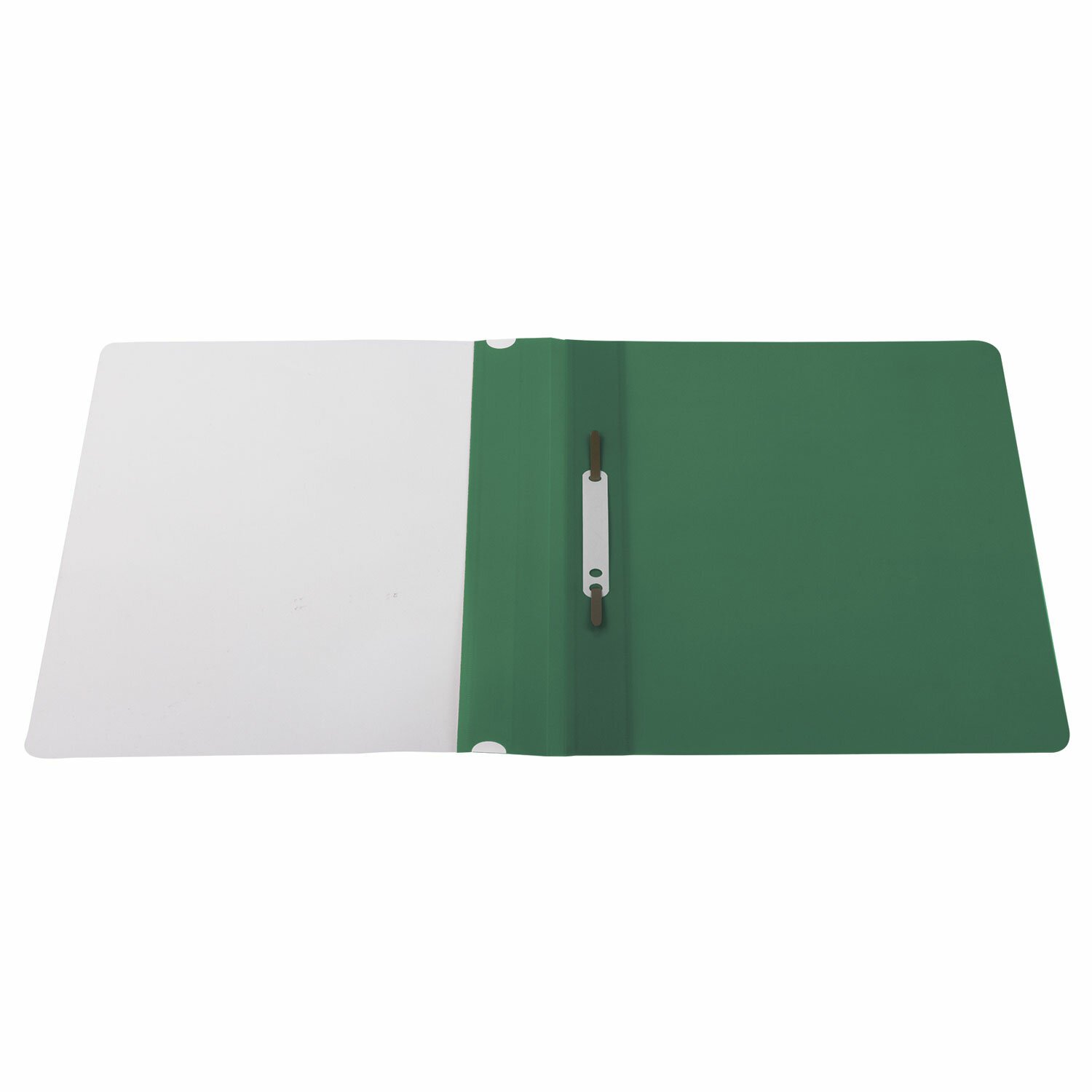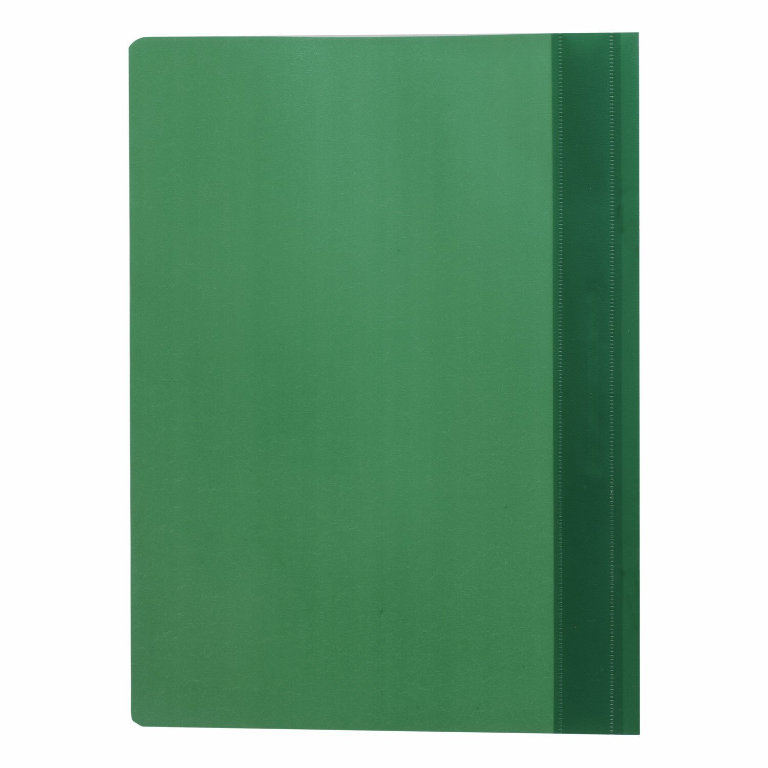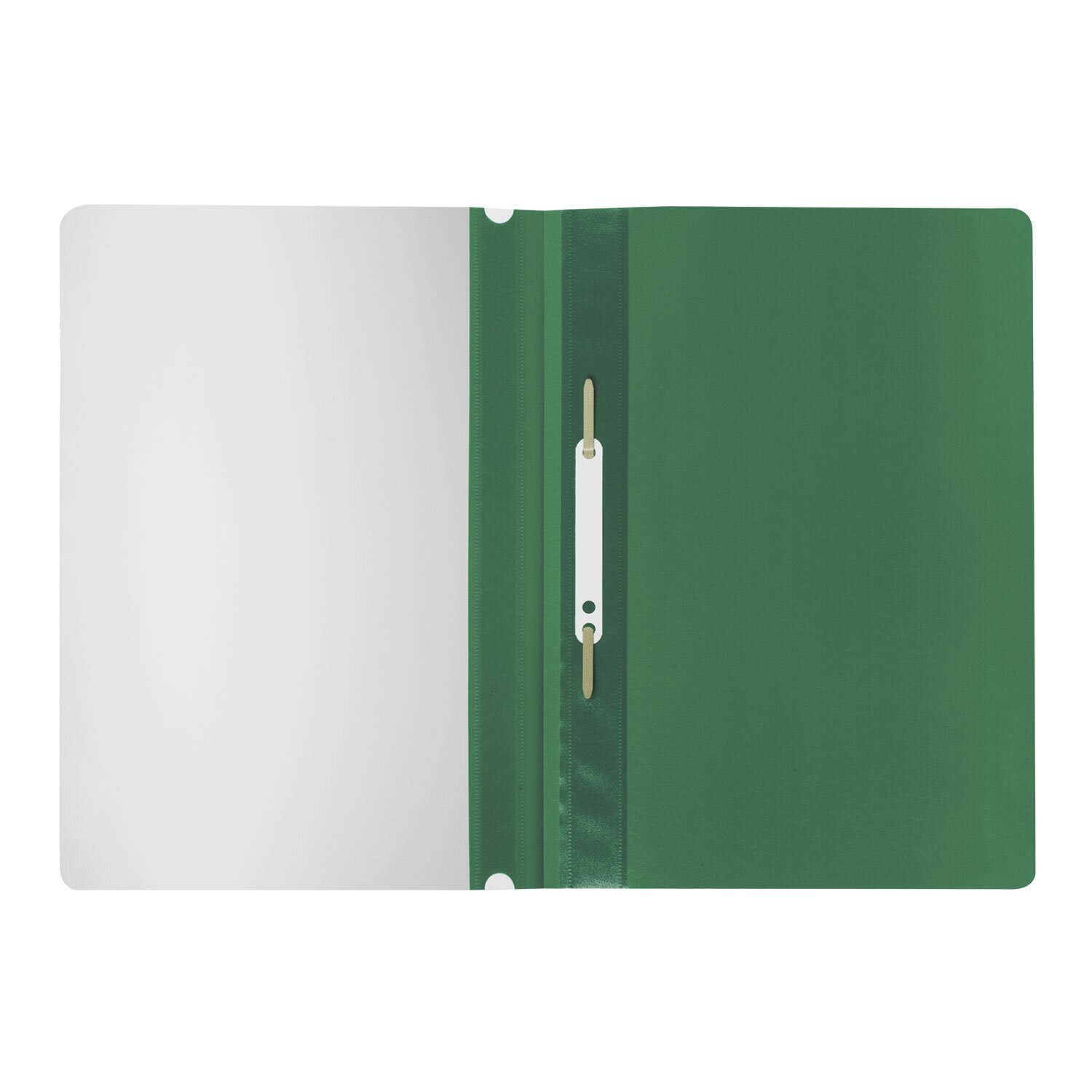 Фиксирует до 100 листов формата А4. Толщина пластика верхнего листа составляет 100 мкм, а нижнего - 120 мкм. Предельно простой механизм подшивки: металлические усики и пластиковая планка для надежной фиксации документов. Скоросшиватель изготовлен из качественного полипропилена. Прозрачный верхний лист позволяет определить содержимое, не открывая скоросшиватель, который к тому же снабжен сменным пластиковым корешком, что дает возможность структурировать информацию. Благодаря гладкой фактуре и яркому зеленому цвету обложки папка никогда не затеряется на полке.