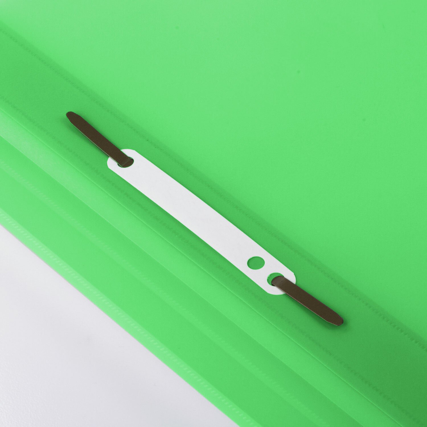 Фиксирует до 100 листов формата А4. Толщина пластика для верхнего листа - 130 мкм, для нижнего - 180 мкм. Предельно простой механизм подшивки: металлические усики и пластиковая планка для надежной фиксации документов. Скоросшиватель изготовлен из полипропилена. Снабжен прозрачным верхним листом. Для идентификации имеет сменный пластиковый корешок. Благодаря фактуре "песок" и яркому салатовому цвету обложки важная папка никогда не затеряется на полке.