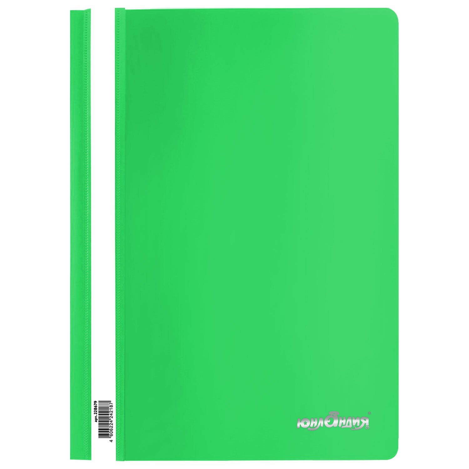 Скоросшиватель пластиковый ЮНЛАНДИЯ, А4, 130/180 мкм, салатовый, 228679