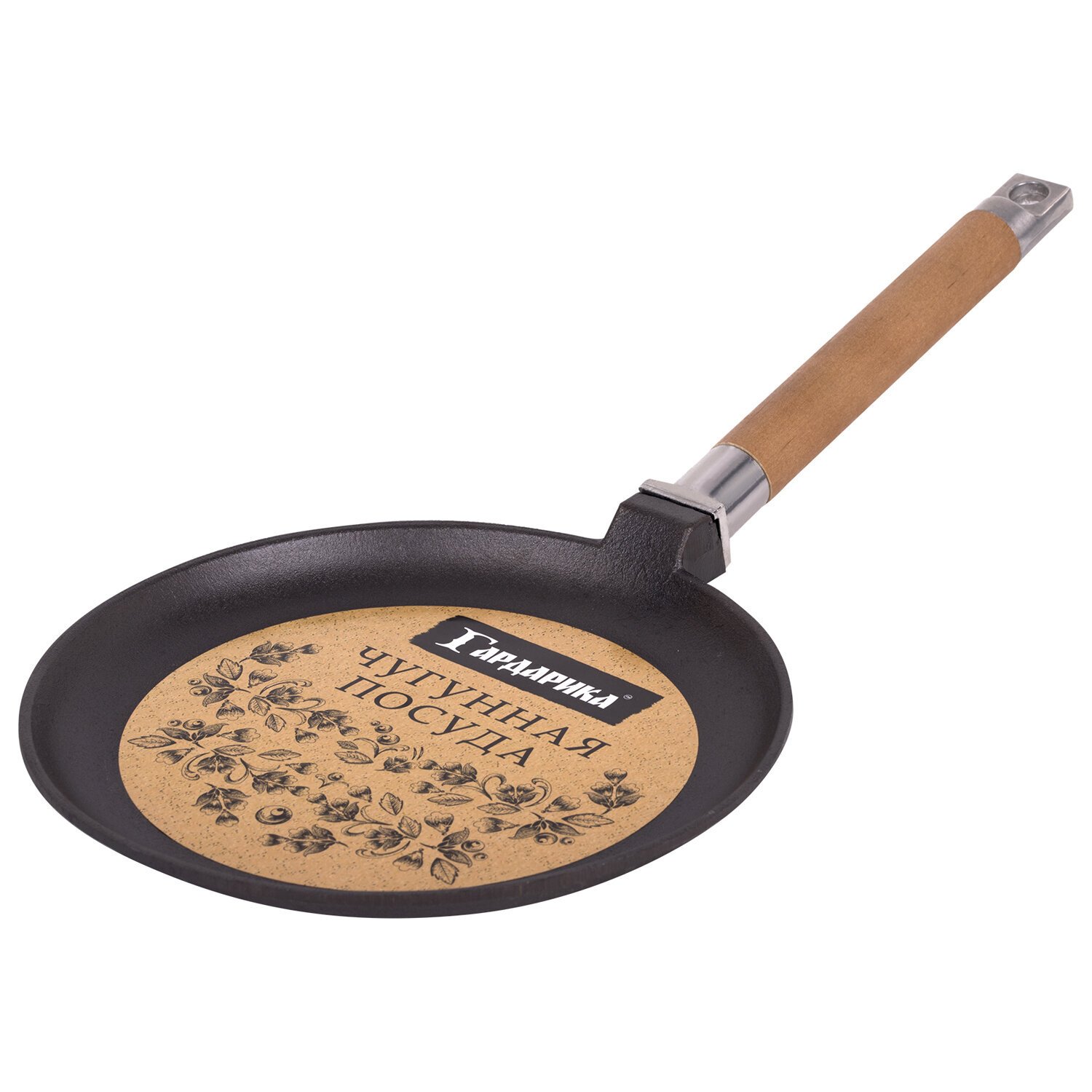 Сковорода блинная чугунная 22 см со съемной ручкой (подходит для индукции), ГАРДАРИКА, 0822