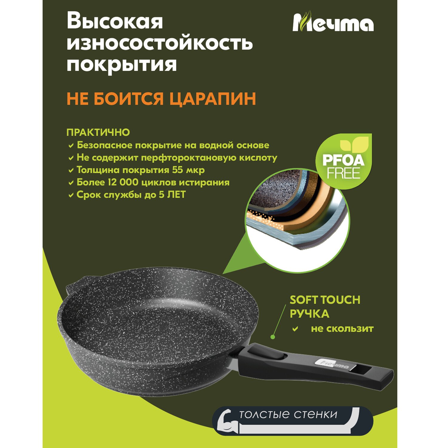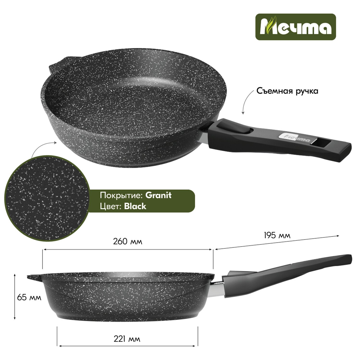 Сковорода индукционная 26 см, съемная soft-touch ручка, антипригарное покрытие, МЕЧТА "Гранит", 026802И