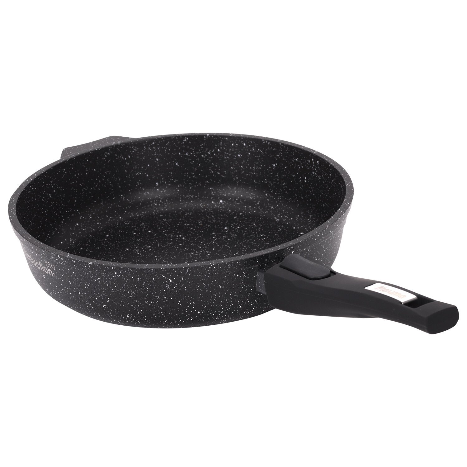 Сковорода 28 см, съемная soft-touch ручка, крышка, антипригарное покрытие, МЕЧТА "Гранит Black", с028802