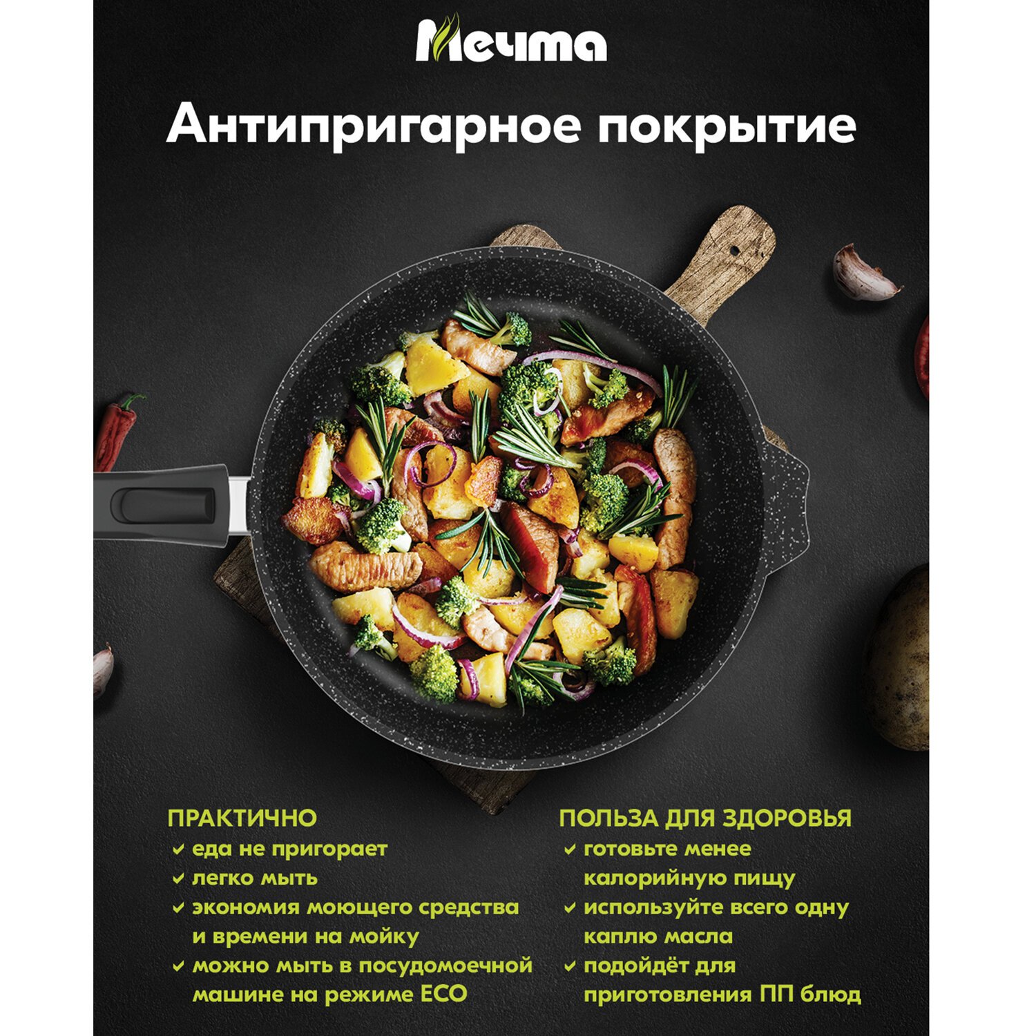 Сковорода МЕЧТА "Гранит" из литого высококачественного пищевого алюминия станет надежным помощником на вашей кухне.
