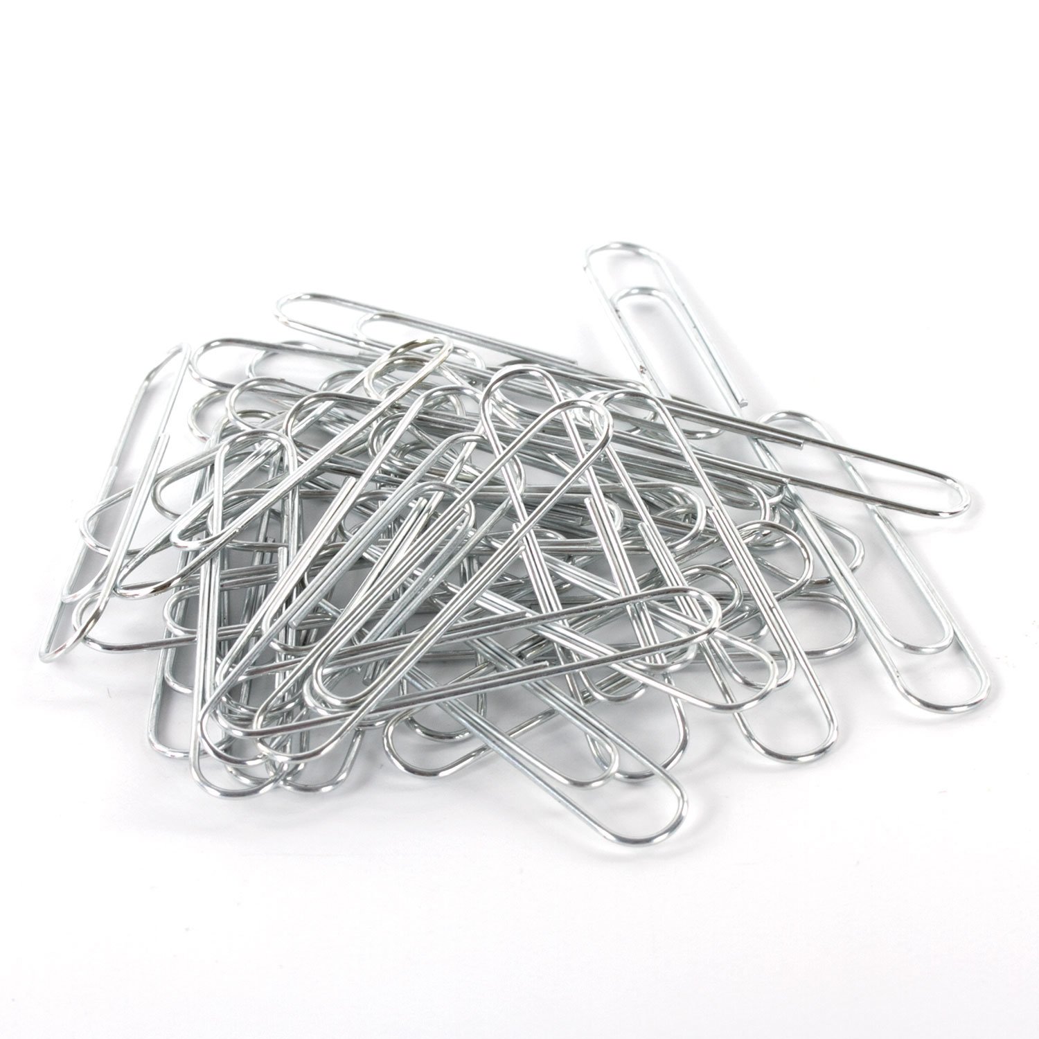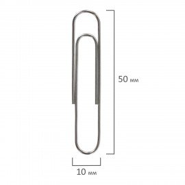 Большие скрепки изготовлены из стали, имеют классическую овальную форму и цинковое покрытие. Длина скрепки составляет 50 мм. Не окисляются и не повреждают документы. 50 штук в картонной коробке.