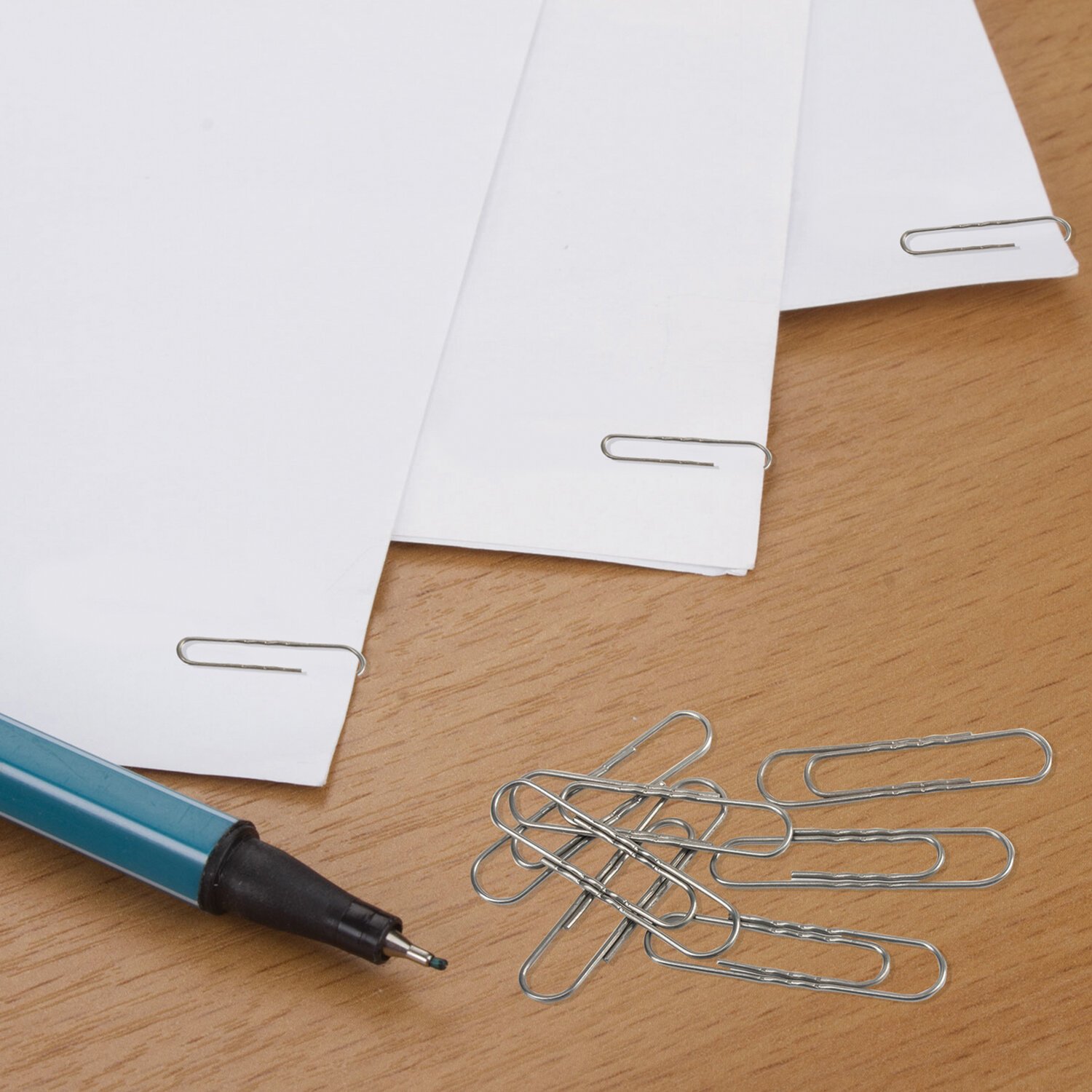 Большие гофрированные скрепки изготовлены из стали, имеют классическую овальную форму. Длина скрепки составляет 50 мм. Не окисляются и не повреждают документы. 50 штук в картонной коробке.