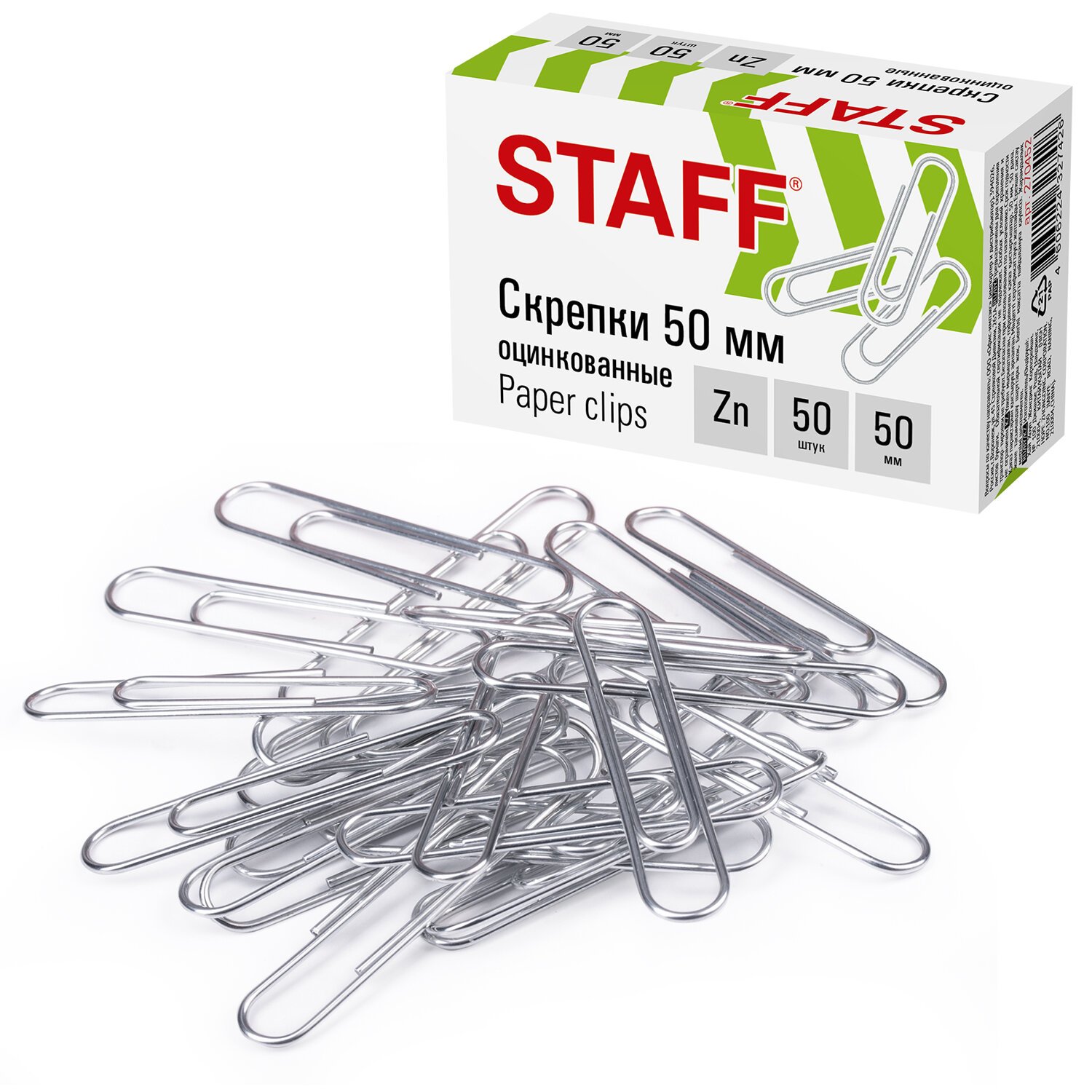 Скрепки большие 50 мм, STAFF, оцинкованные, 50 шт., в картонной коробке, РОССИЯ, 224800
