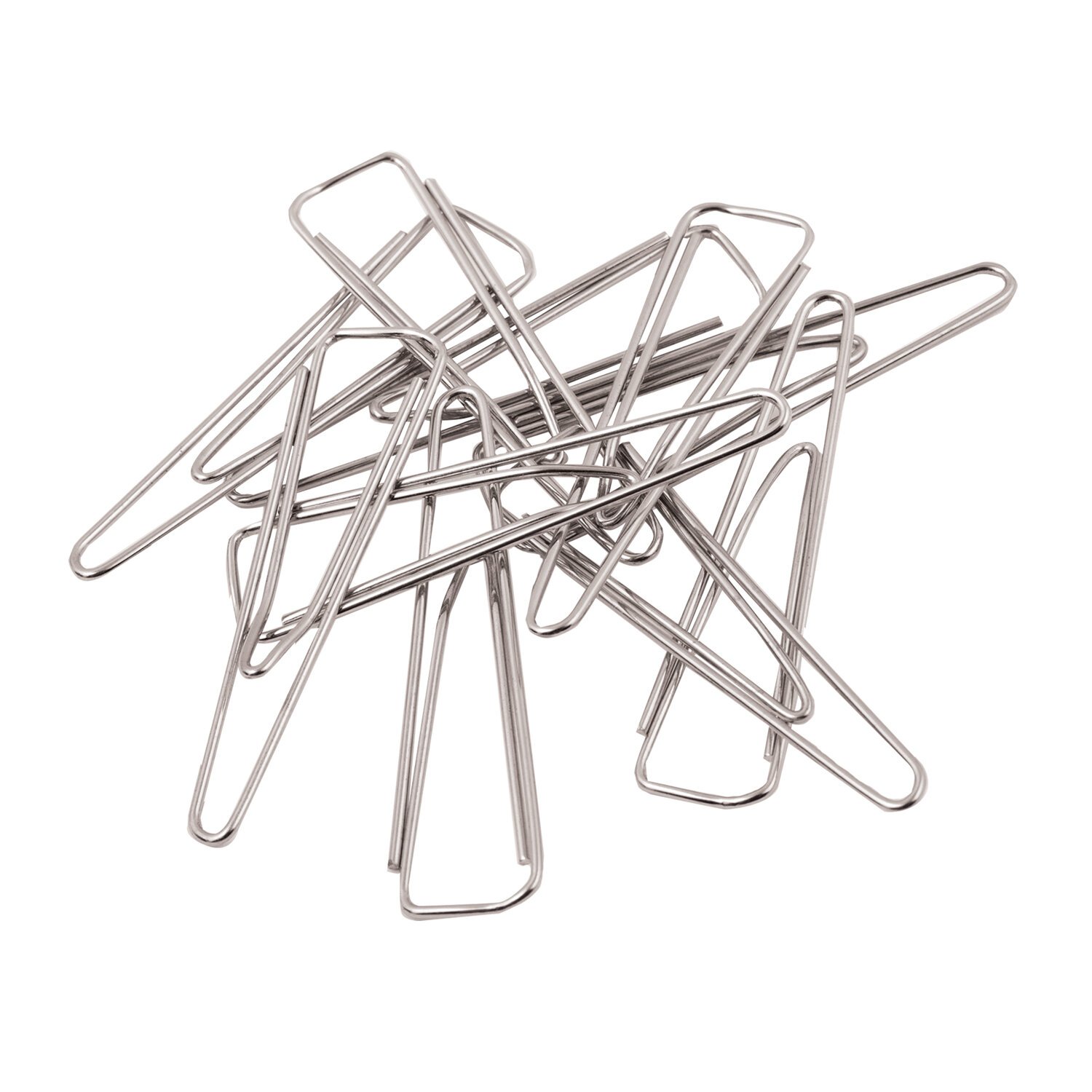 Скрепки изготовлены из стали, имеют треугольную форму и блестящее никелевое покрытие. Длина скрепки составляет 25 мм. Не окисляются и не повреждают документы. 100 штук в картонной коробке.