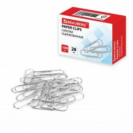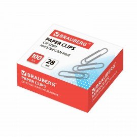 Скрепки BRAUBERG, 28 мм, никелированные, 100 шт., в картонной коробке, Россия, 221523