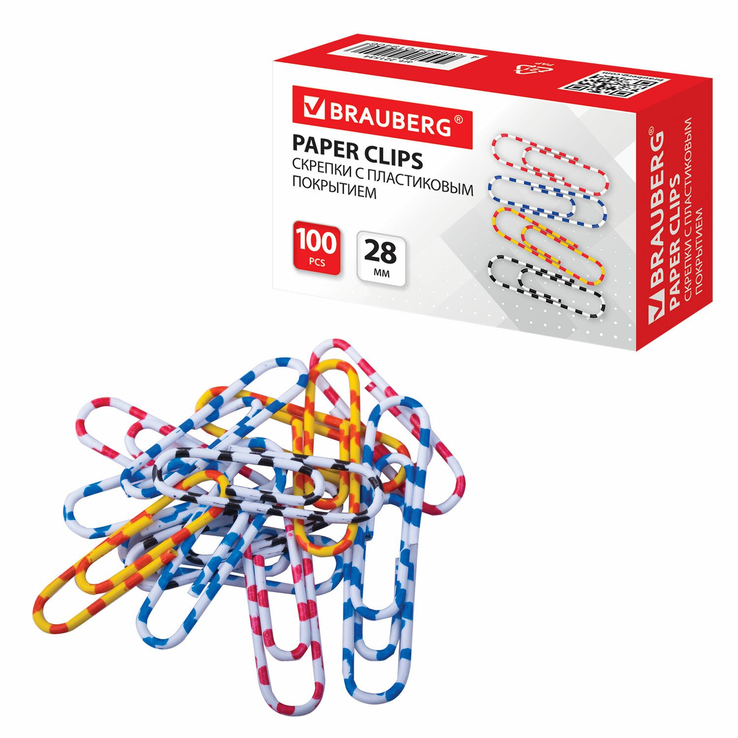 Скрепки BRAUBERG, 28 мм, цветные, 100 шт., в картонной коробке, Россия, 220555