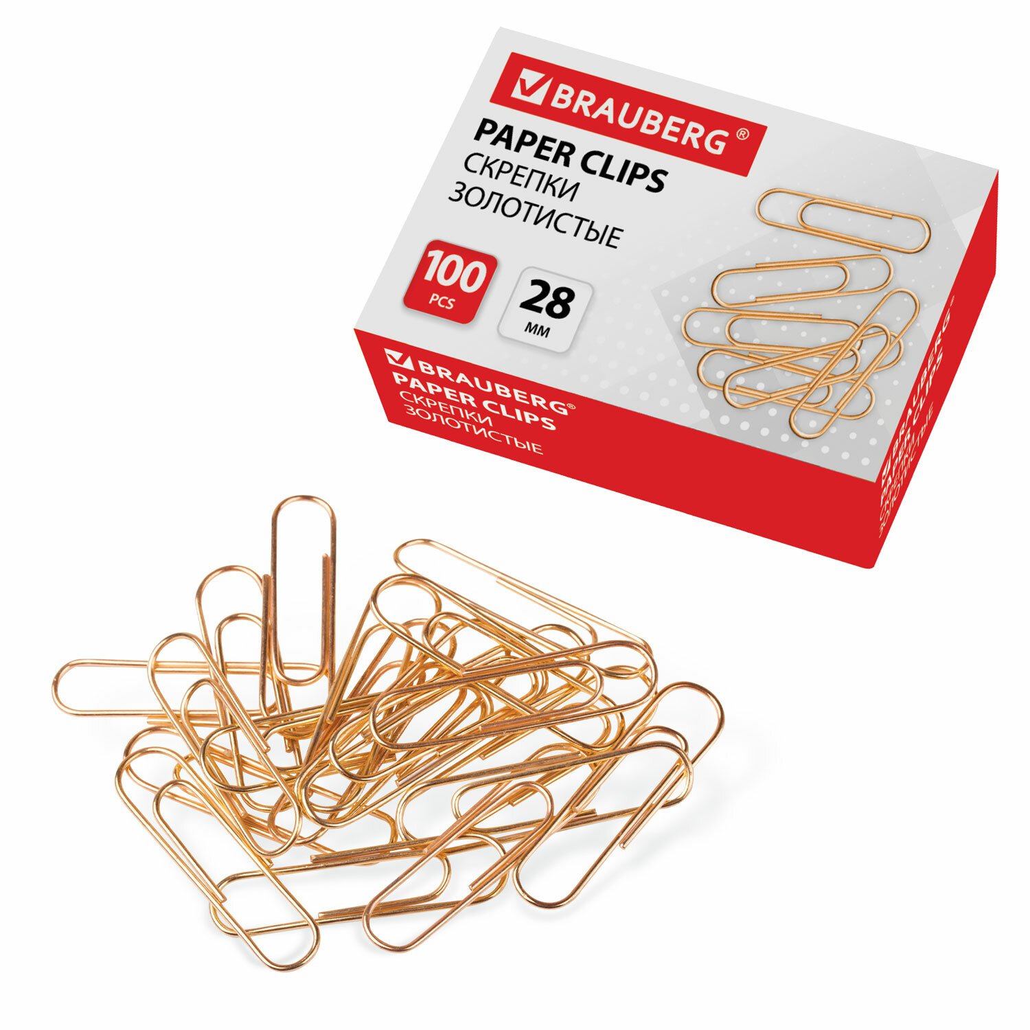 Скрепки BRAUBERG, 28 мм, золотистые, 100 шт., в картонной коробке, 221529