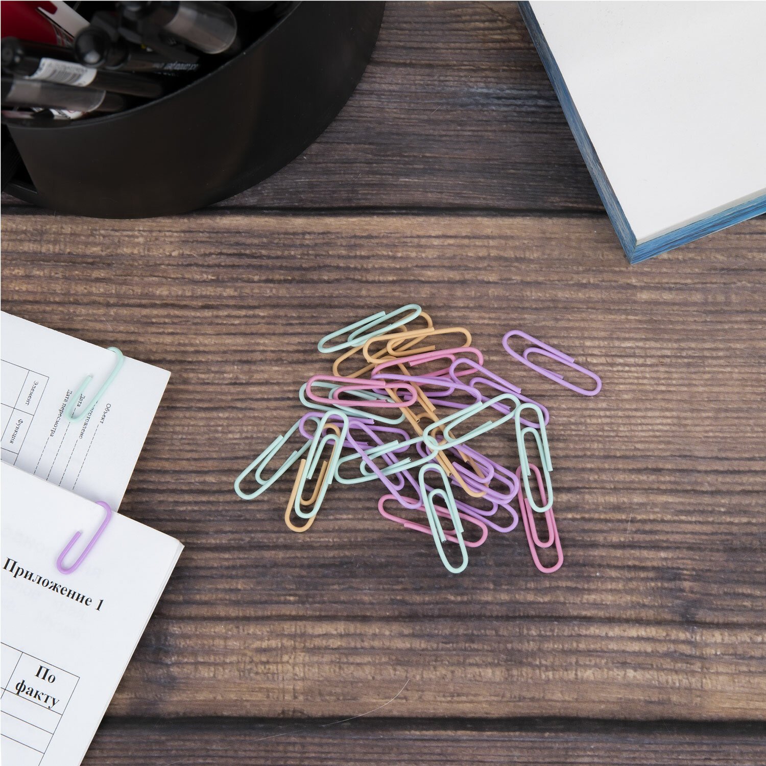 Канцелярские скрепки BRAUBERG PASTEL овальной формы с цветным полимерным покрытием в пастельных цветах ассорти.