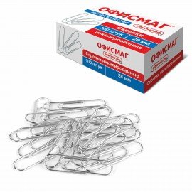 Скрепки ОФИСМАГ, 28 мм, никелированные, 100 шт., в картонной коробке, Россия, 222094