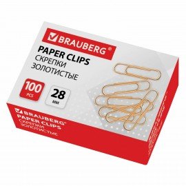 Скрепки BRAUBERG, 28 мм, золотистые, 100 шт., в картонной коробке, 221529