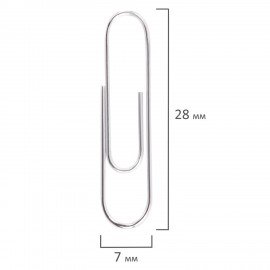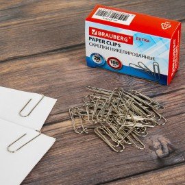 Скрепки BRAUBERG, 28 мм, никелированные, 100 шт., в картонной коробке, Россия, 221523