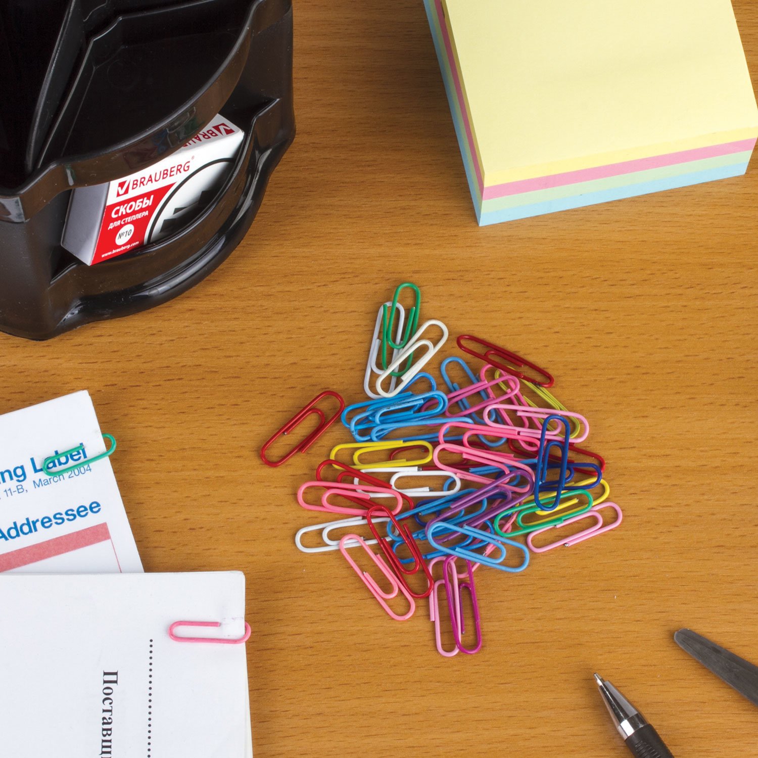 Скрепки BRAUBERG, 28 мм, цветные, 100 шт., в картонной коробке, Россия, 220555