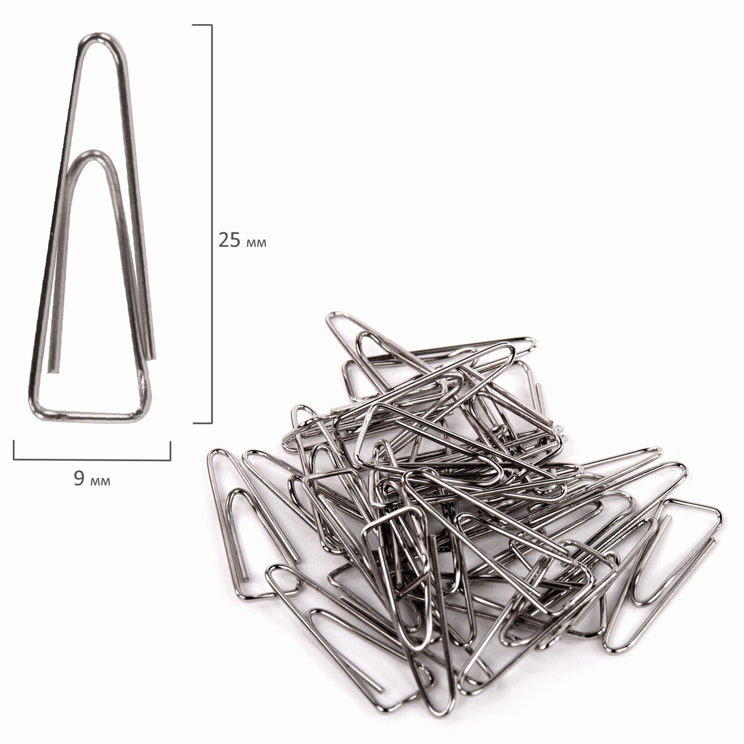 Скрепки ОФИСНАЯ ПЛАНЕТА, 25 мм, никелированные, треугольные, 100 шт., в картонной коробке, 222043