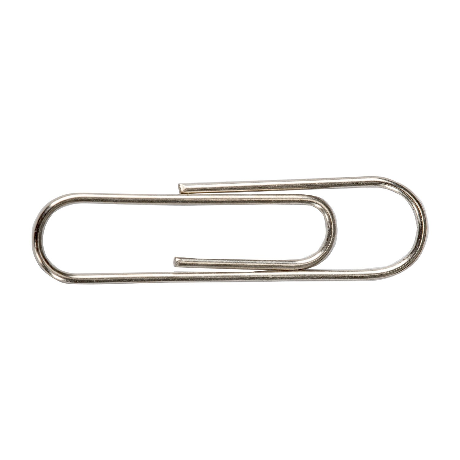 Скрепки изготовлены из стали, имеют классическую овальную форму и блестящее никелевое покрытие. Длина скрепки составляет 28 мм. Не окисляются и не повреждают документы. 100 штук в картонной коробке.