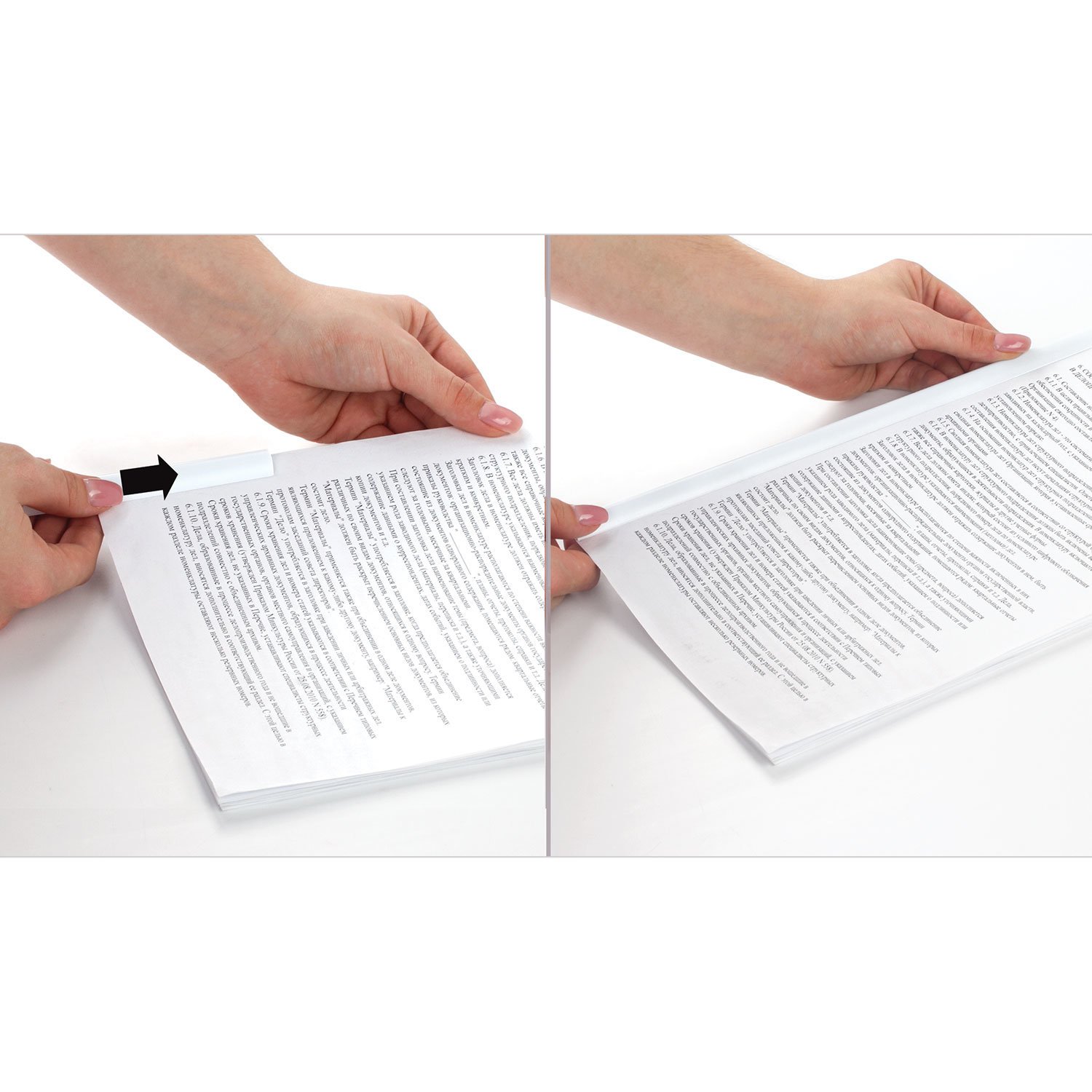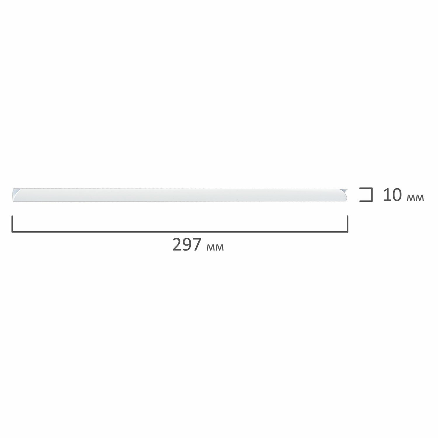 Плотный пластиковый корешок белого цвета надежно скрепляет бумаги. Вмещает до 50 листов. Длина механизма составляет 297 мм, а ширина 10 мм. В комплект входит 10 штук.