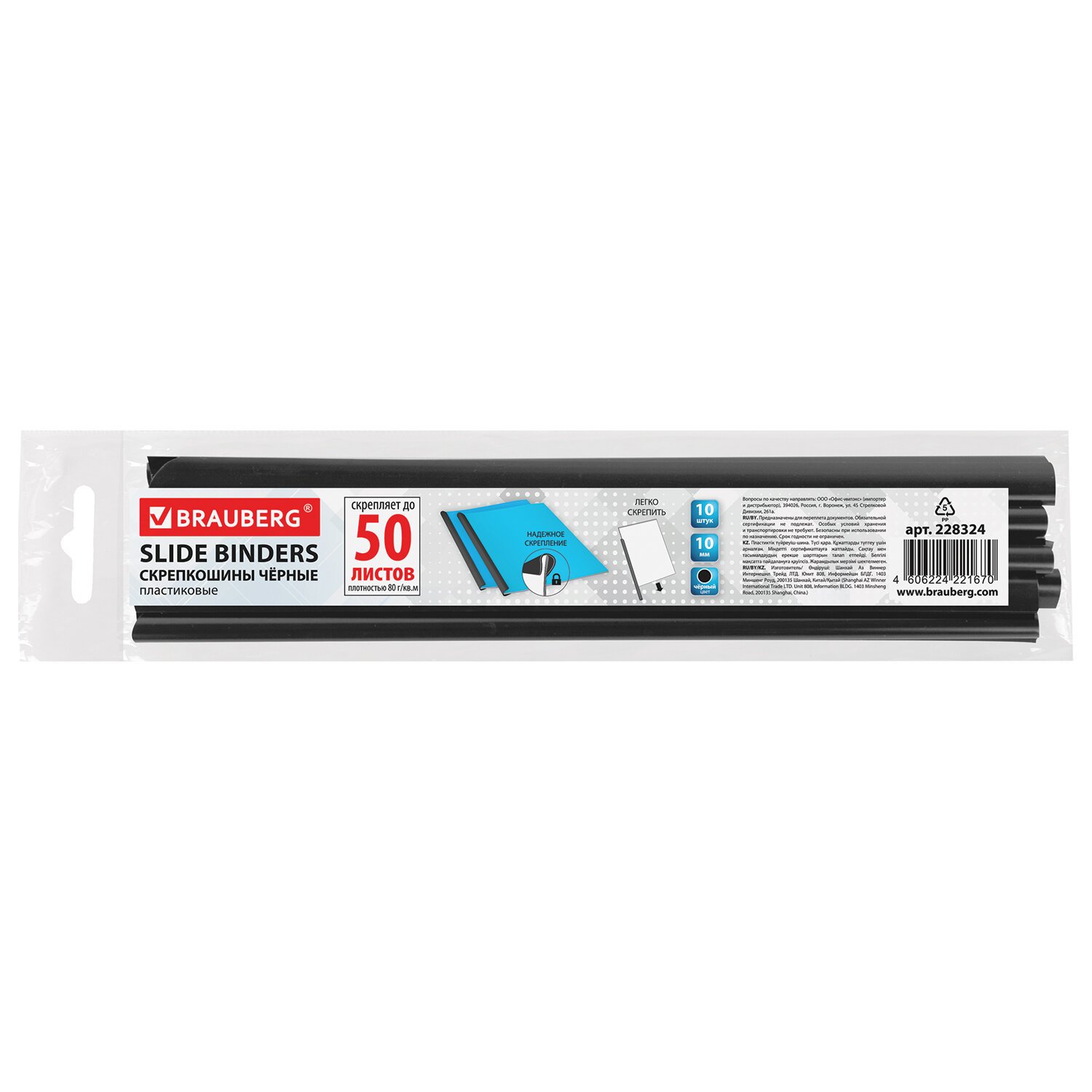 Скрепкошины для быстрого переплета BRAUBERG, КОМПЛЕКТ 10 шт., ширина 10 мм (до 50 листов), ЧЕРНЫЕ, 228324