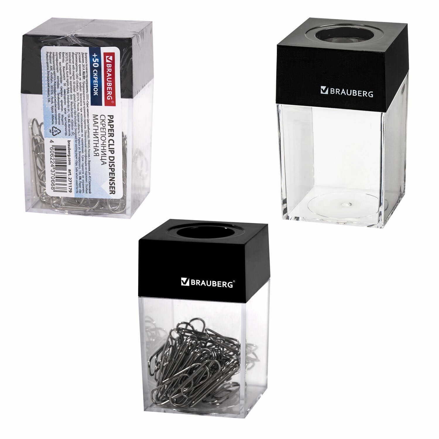 Скрепочница магнитная с 50 никелированными скрепками 28 мм, РОССИЯ, BRAUBERG, 271179