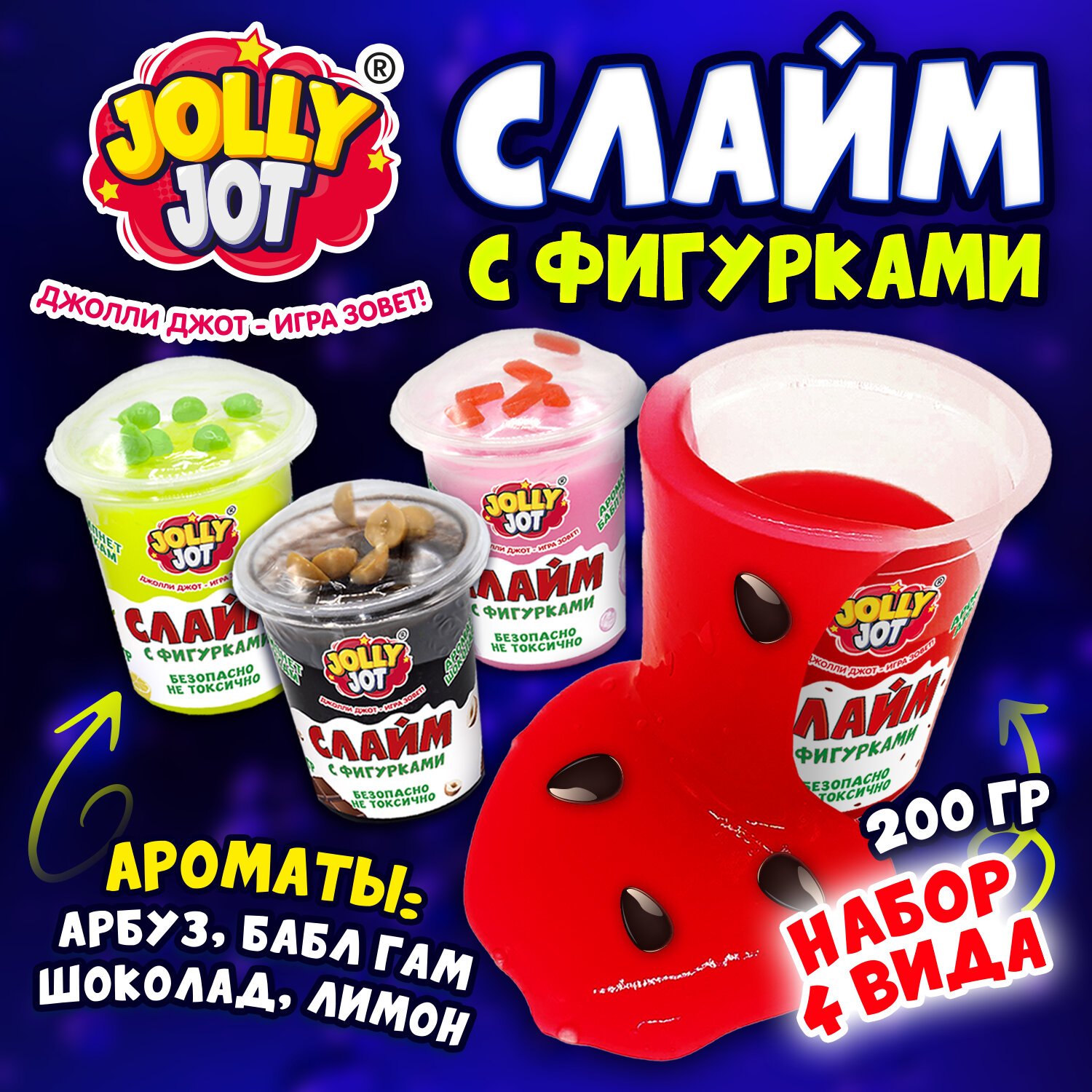 Слайм с фигурками, вкусняшки, 200 гр, НАБОР 4 шт, JOLLY JOT, 666669