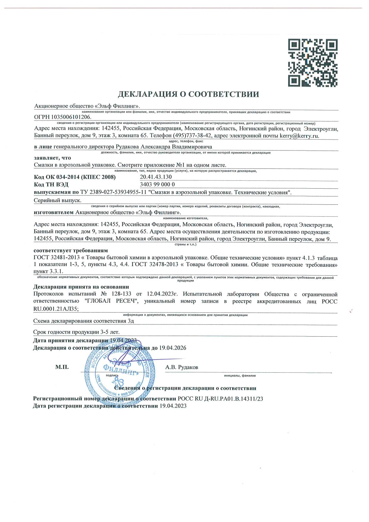 | Форма выпуска | аэрозоль |