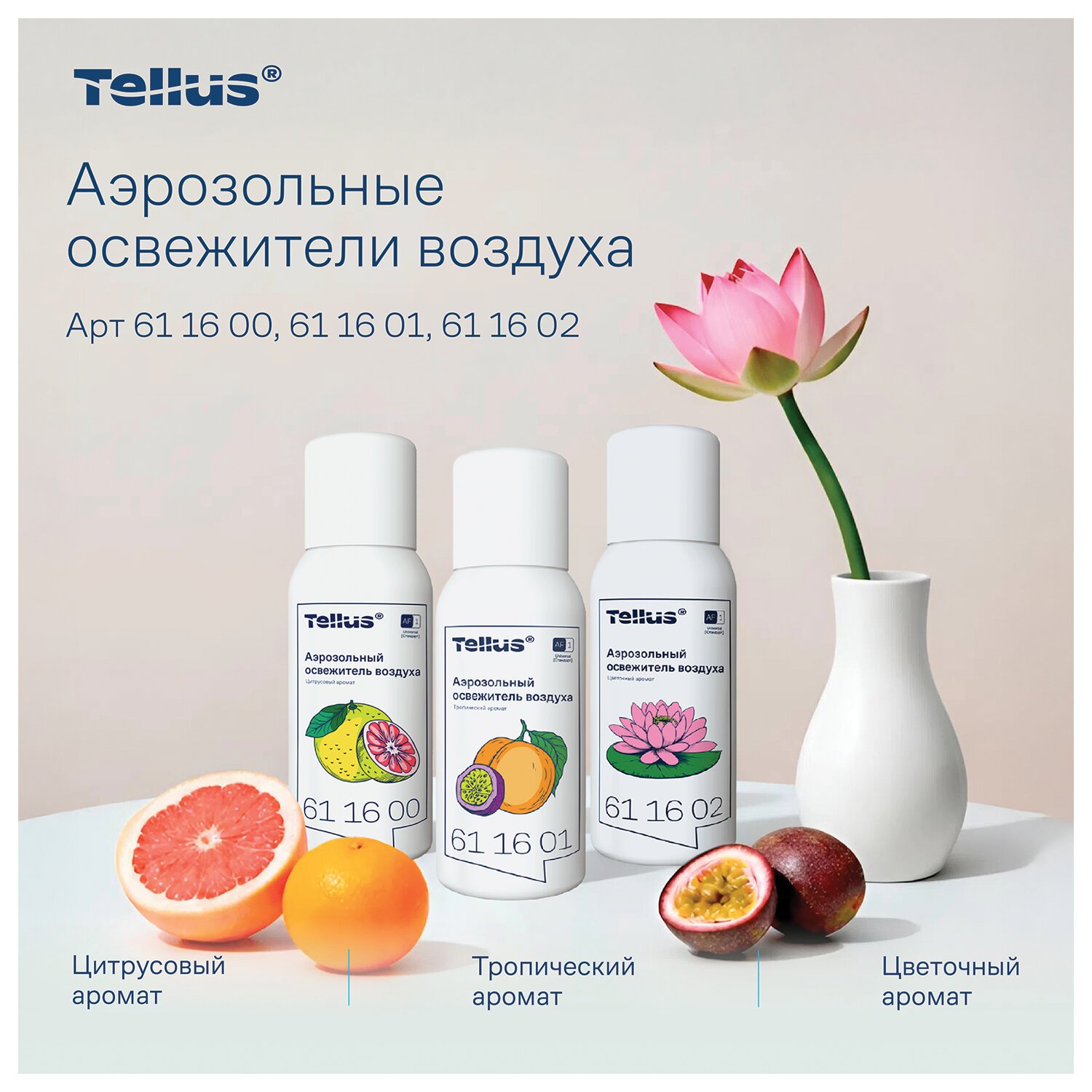 Аэрозольный освежитель воздуха Tellus позволяет эффективно контролировать запах в туалетной комнате при минимальных усилиях. Свежий цитрусовый аромат дарит ощущение чистоты.