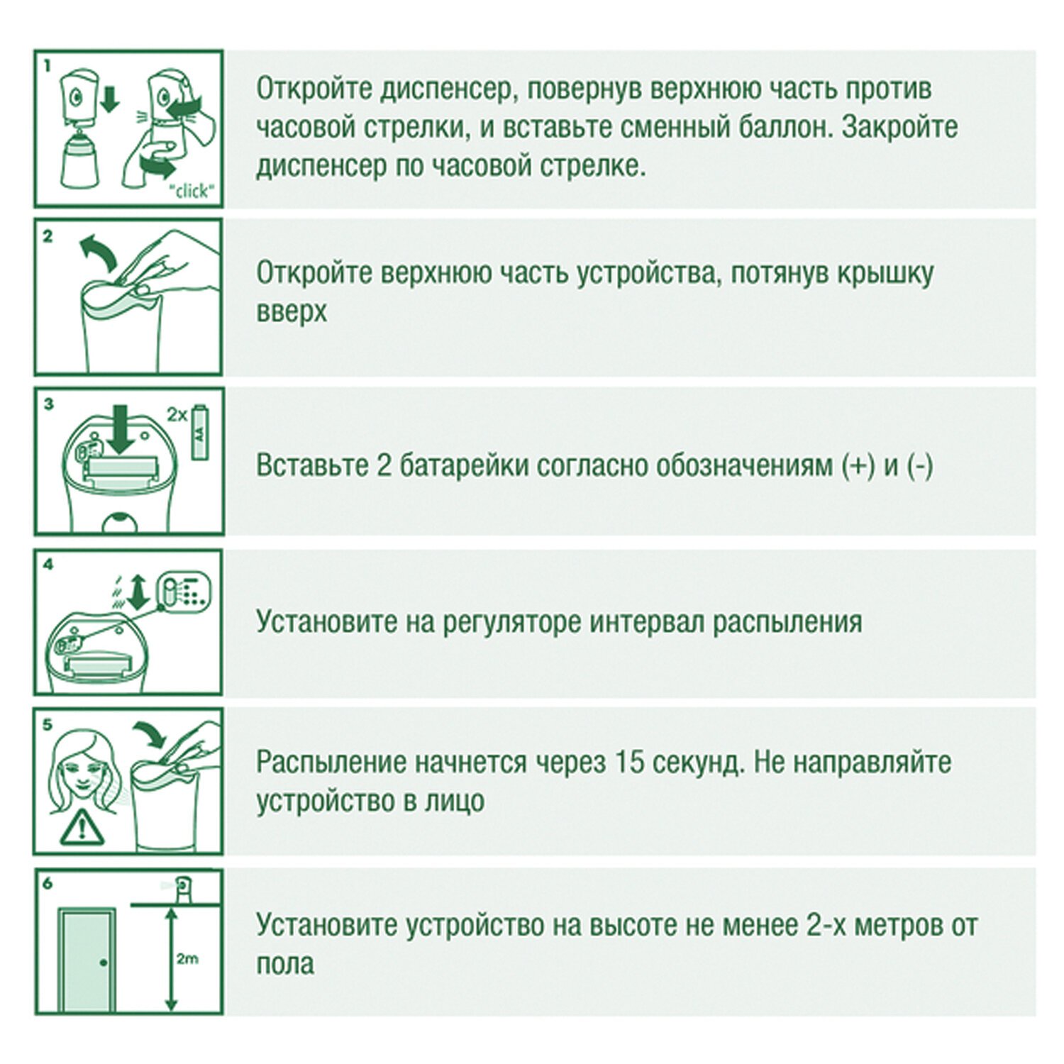 Способ применения: прочитать внимательно этикетку перед использованием и сохранить ее на весь период использования продукта. Вставить баллон в выключенный автоматический распылитель. Всегда направлять струю аэрозоля от лица. Включить – распыление начнется через 15 секунд.