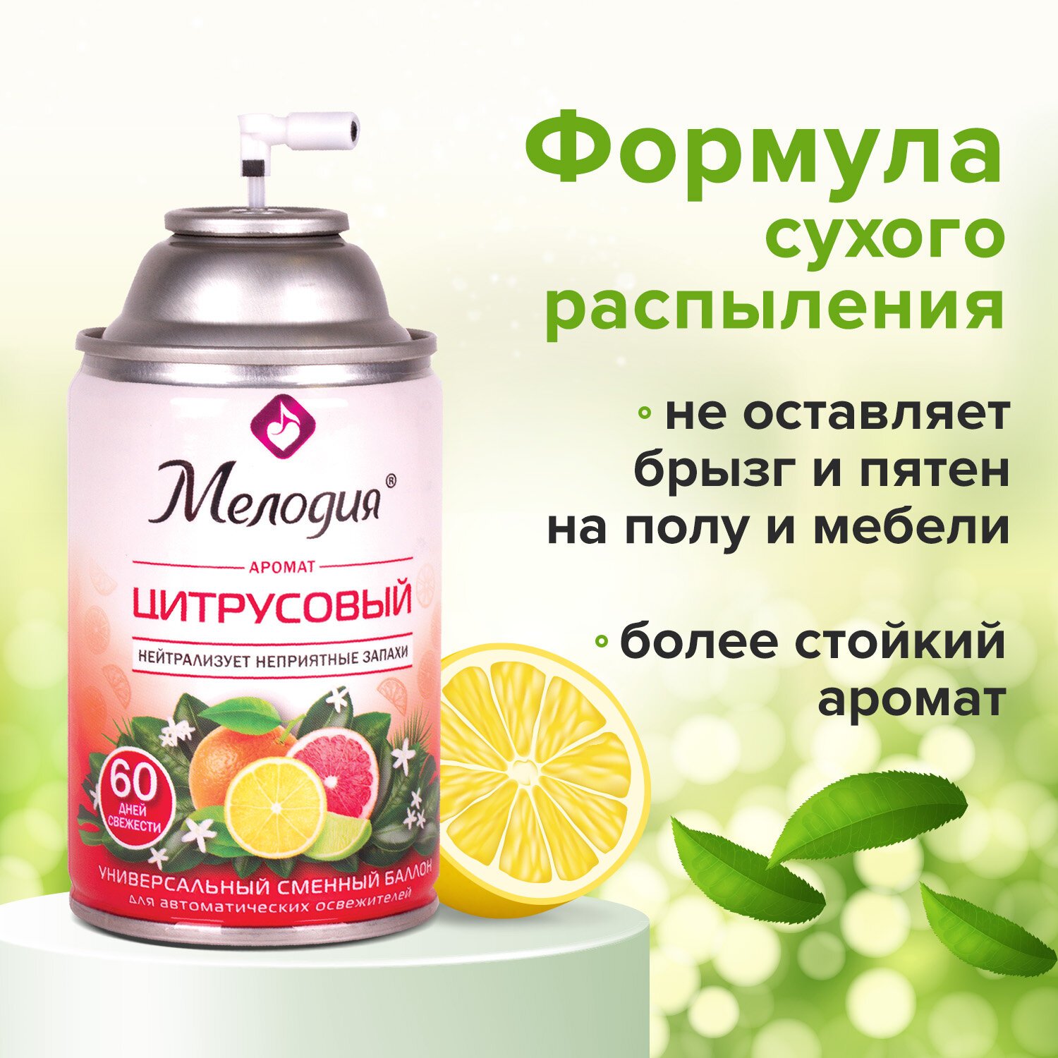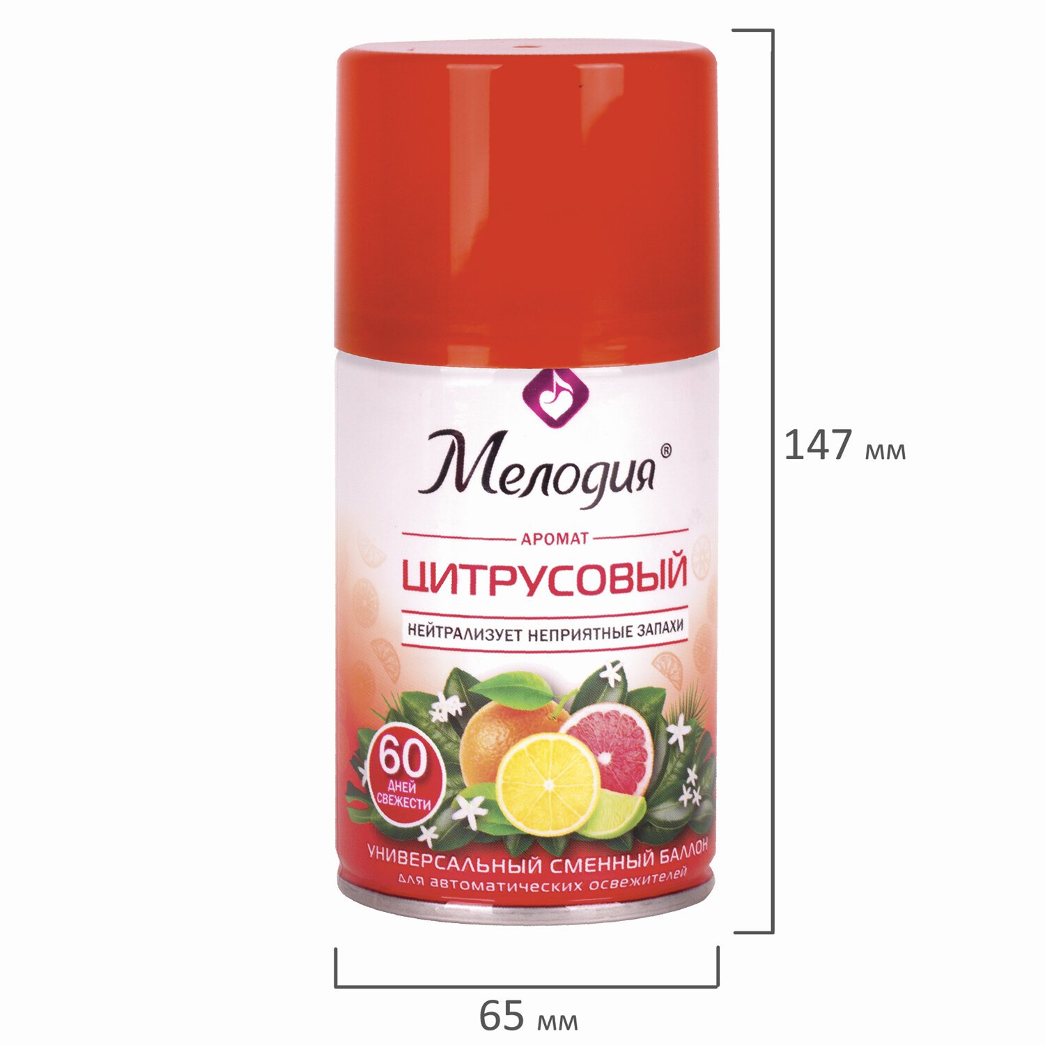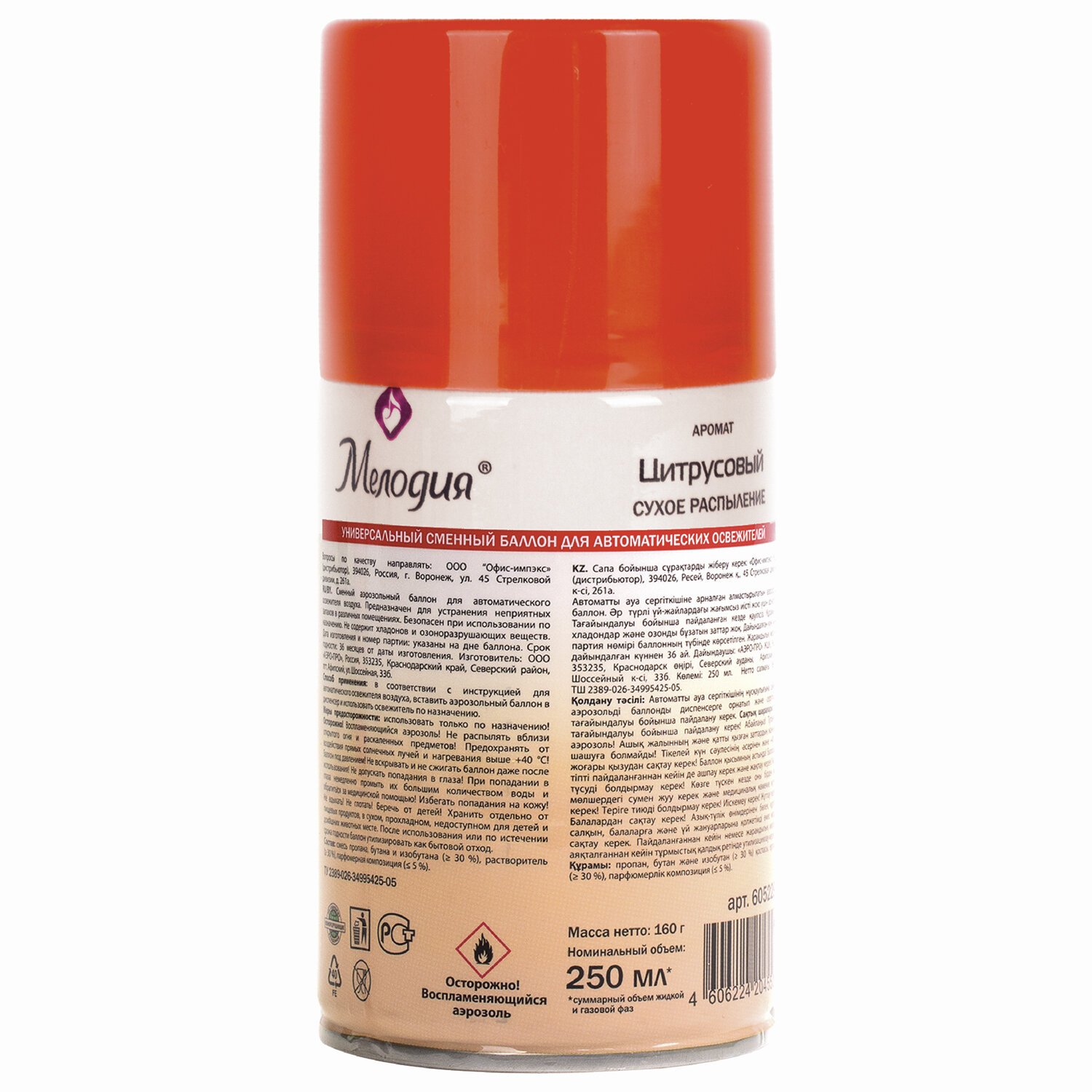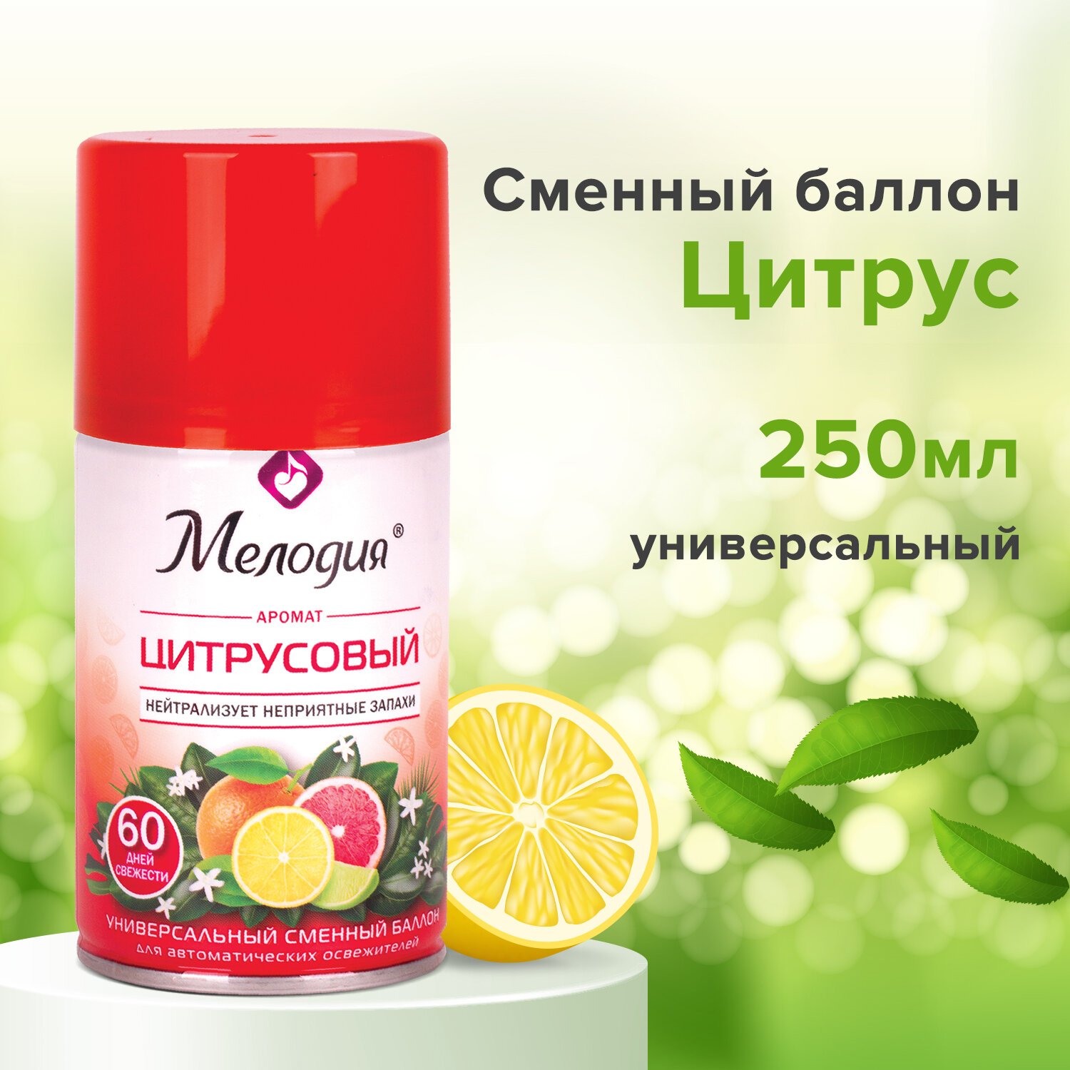 Сменный баллон 250 мл МЕЛОДИЯ "Цитрусовый", для автоматических освежителей, универсальный, 605229