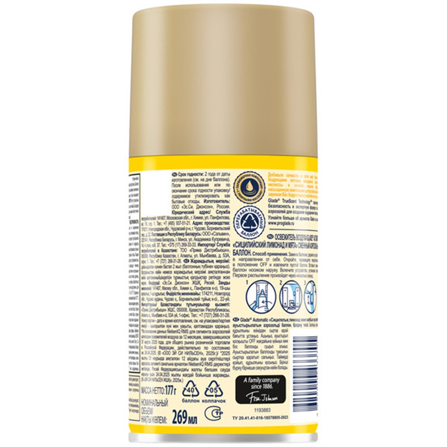 Сменный баллон 269 мл GLADE "Сицилийский лимонад и мята", для автоматических освежителей, универсальный, 33705
