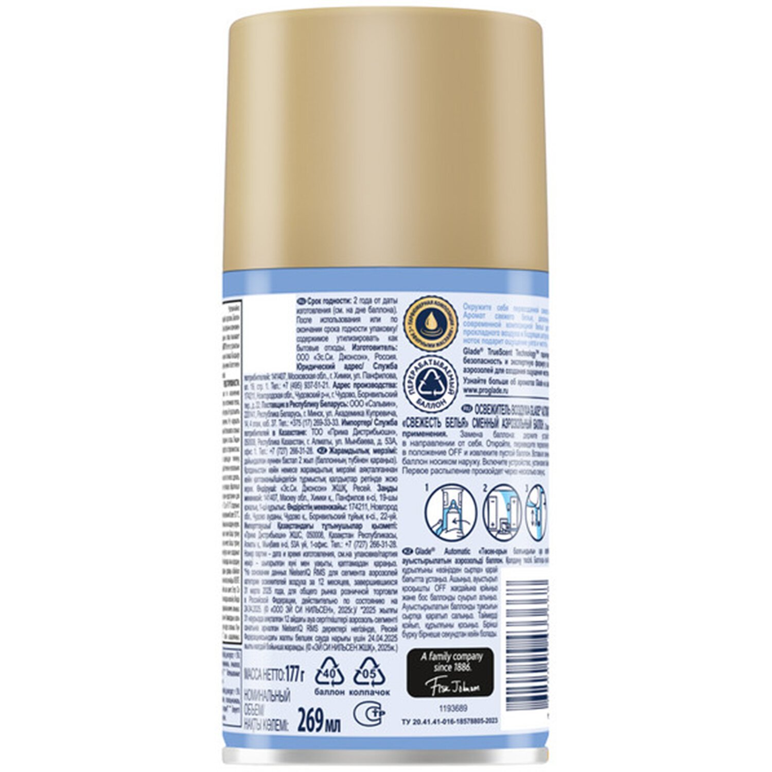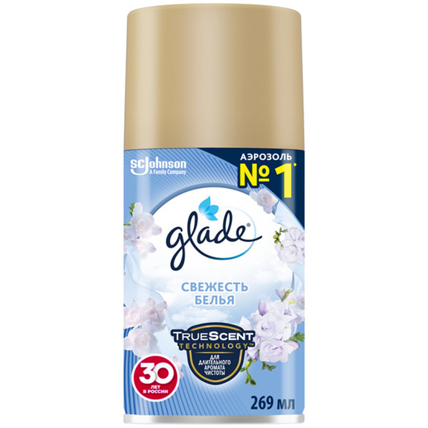 Сменный баллон 269 мл GLADE "Свежесть белья" для автоматических освежителей, 864976