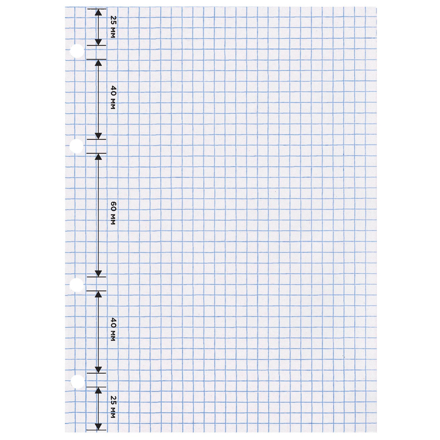 Подходит для всех тетрадей на кольцах формата А5. Внутренний блок содержит 120 листов белой, офсетной бумаги плотностью 60 г/м2. Линовка - в клетку без полей. Упакован в термопленку.