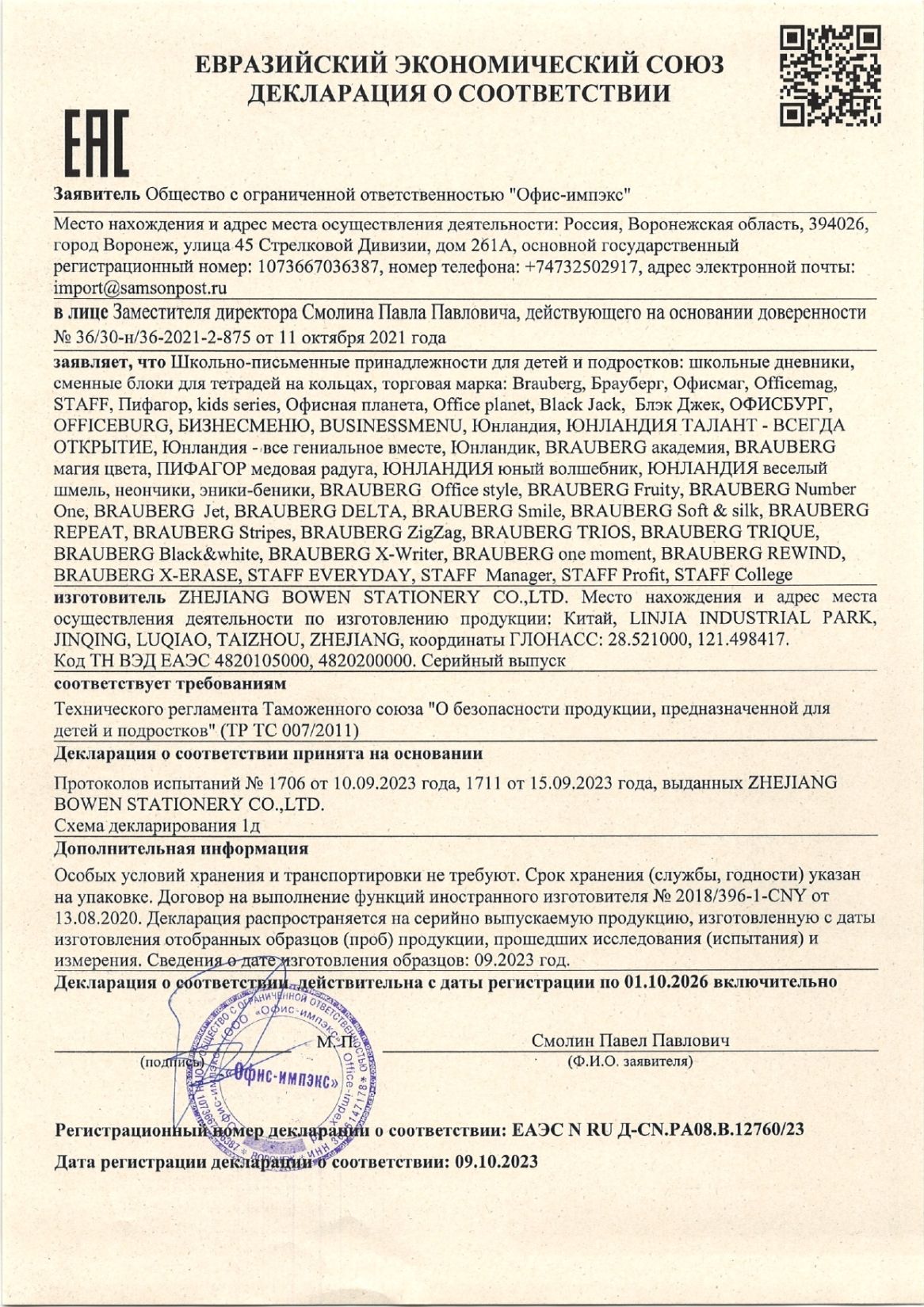 Блок состоит из 120 листов офсетной бумаги белого цвета повышенной плотности 70 г/м2. Линовка - клетка с полями.
