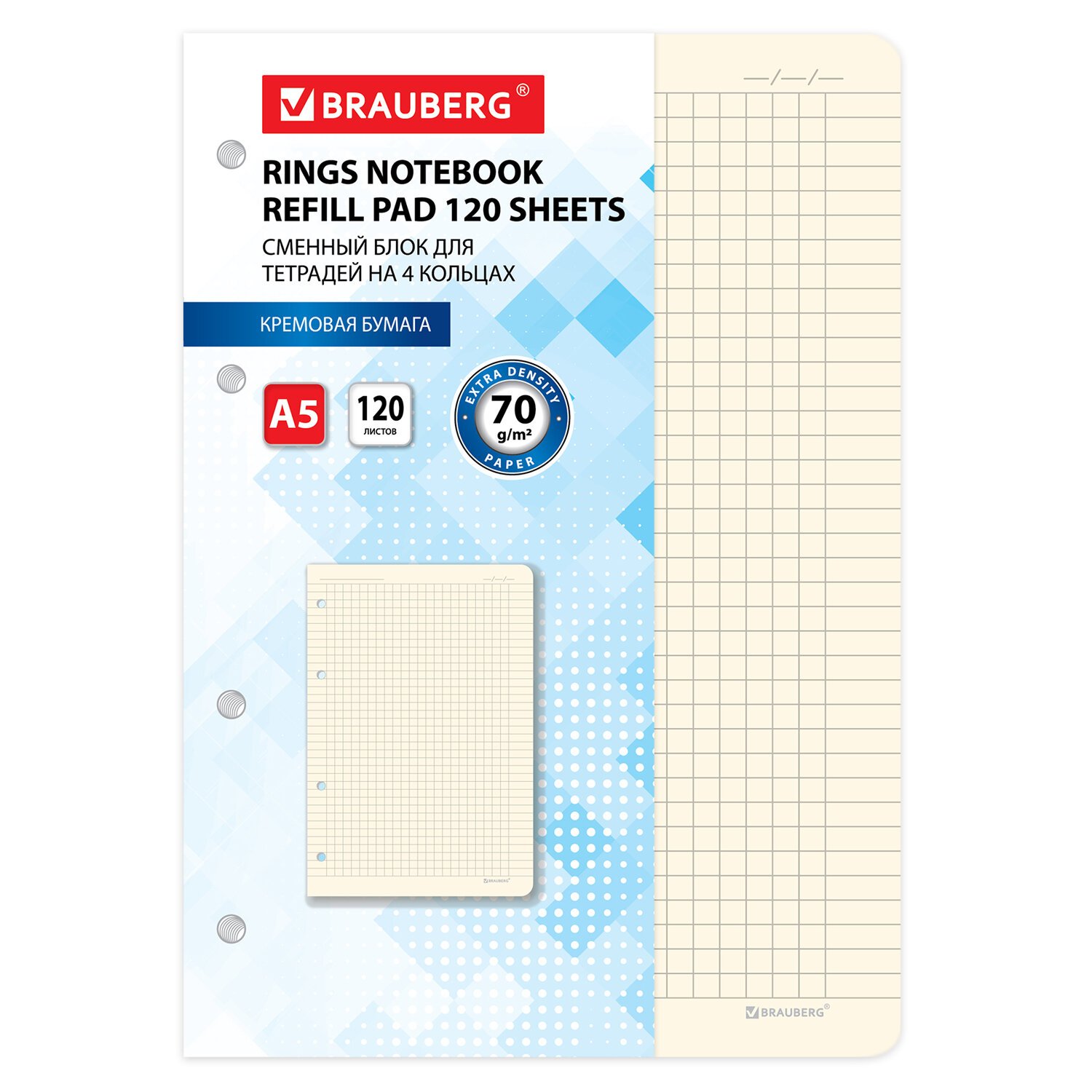 Сменный блок для тетради на кольцах А5 120 л., BRAUBERG, ПОВЫШЕННОЙ ПЛОТНОСТИ, кремовый, 403639