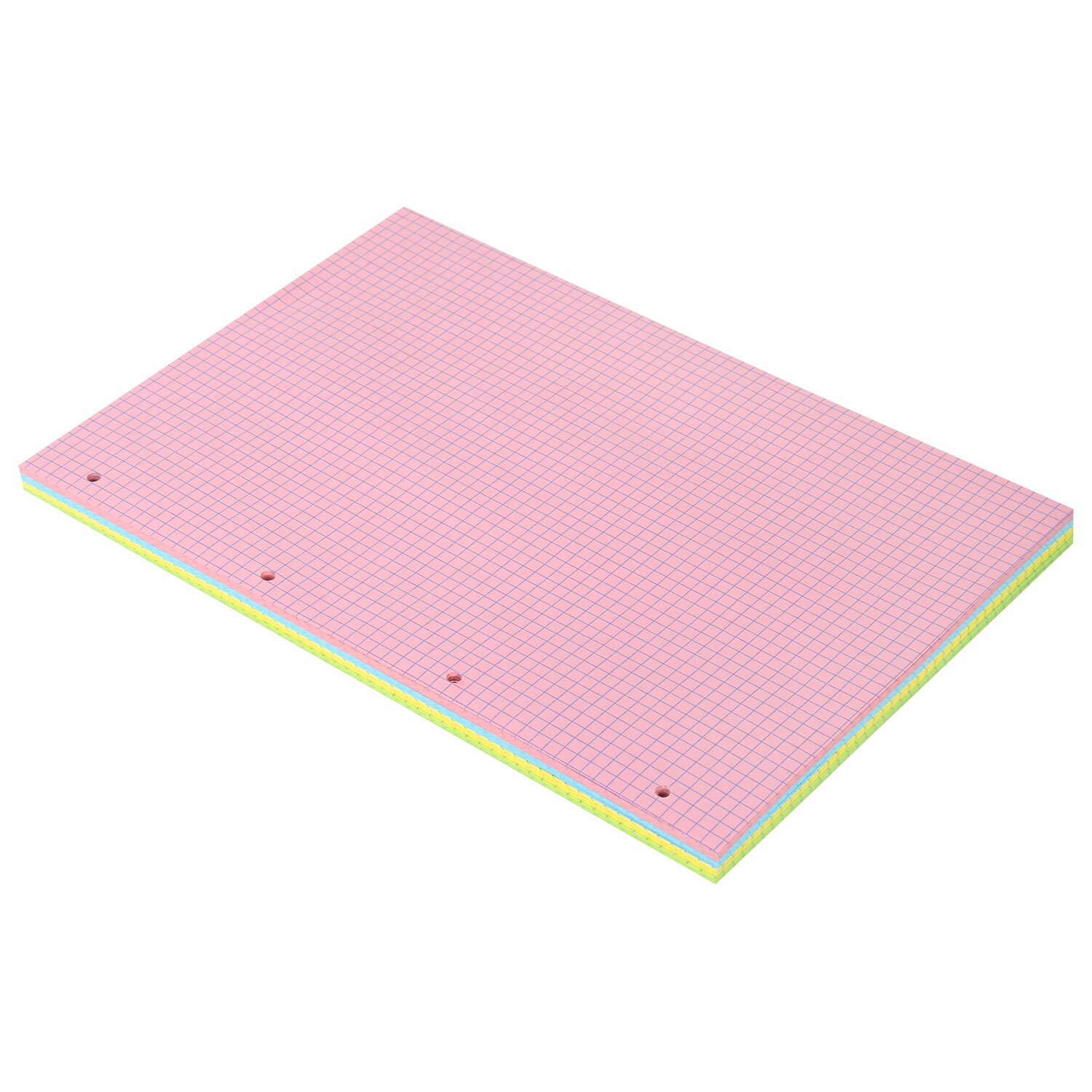 Подходит для всех тетрадей на кольцах формата А4. Внутренний блок содержит 120 листов офсетной бумаги плотностью 60 г/м2. Линовка - клетка без полей. 4 цвета по 30 листов: розовый, желтый, голубой, персиковый - каждый цвет для настроения. Упакован в термопленку.