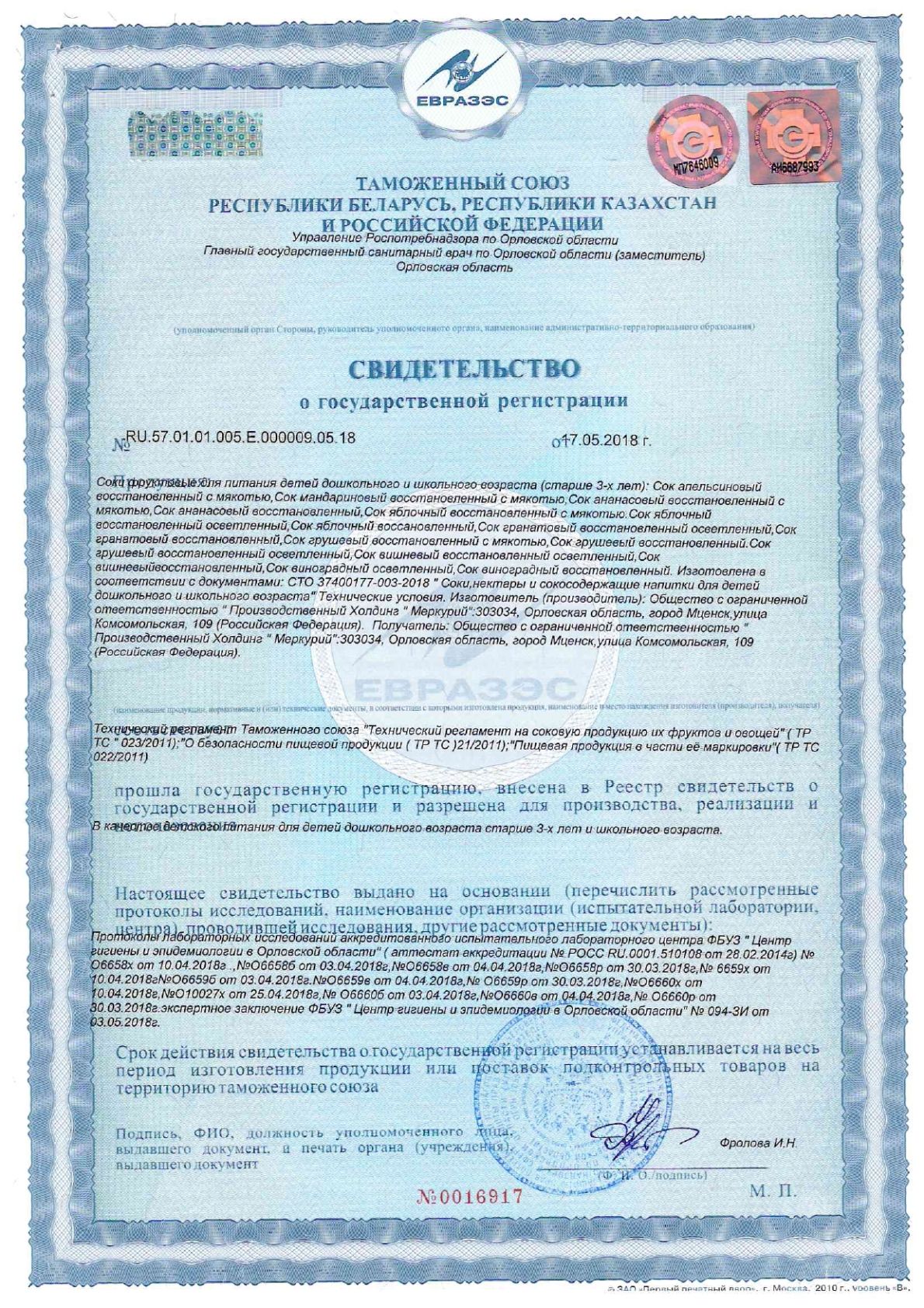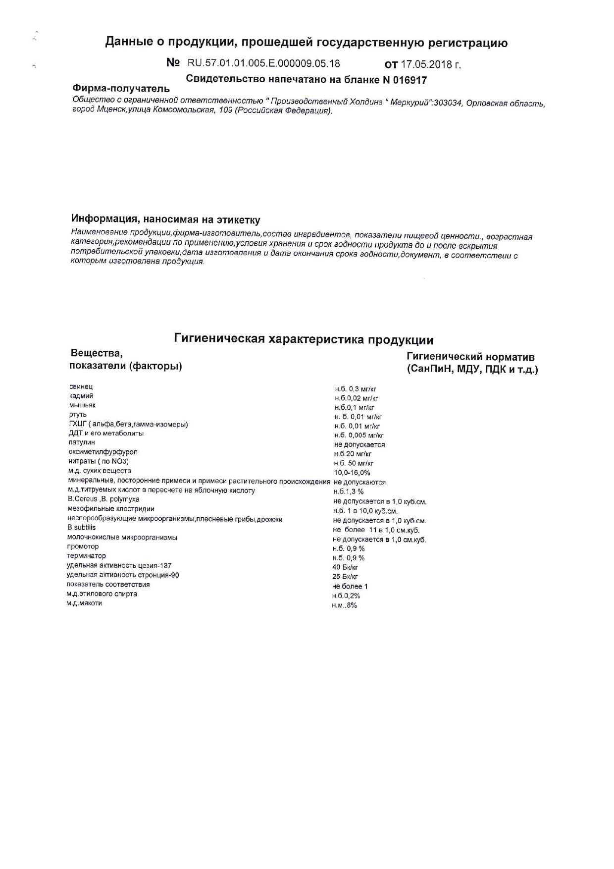 | Фирма-производитель | ООО "ПХ Меркурий" |