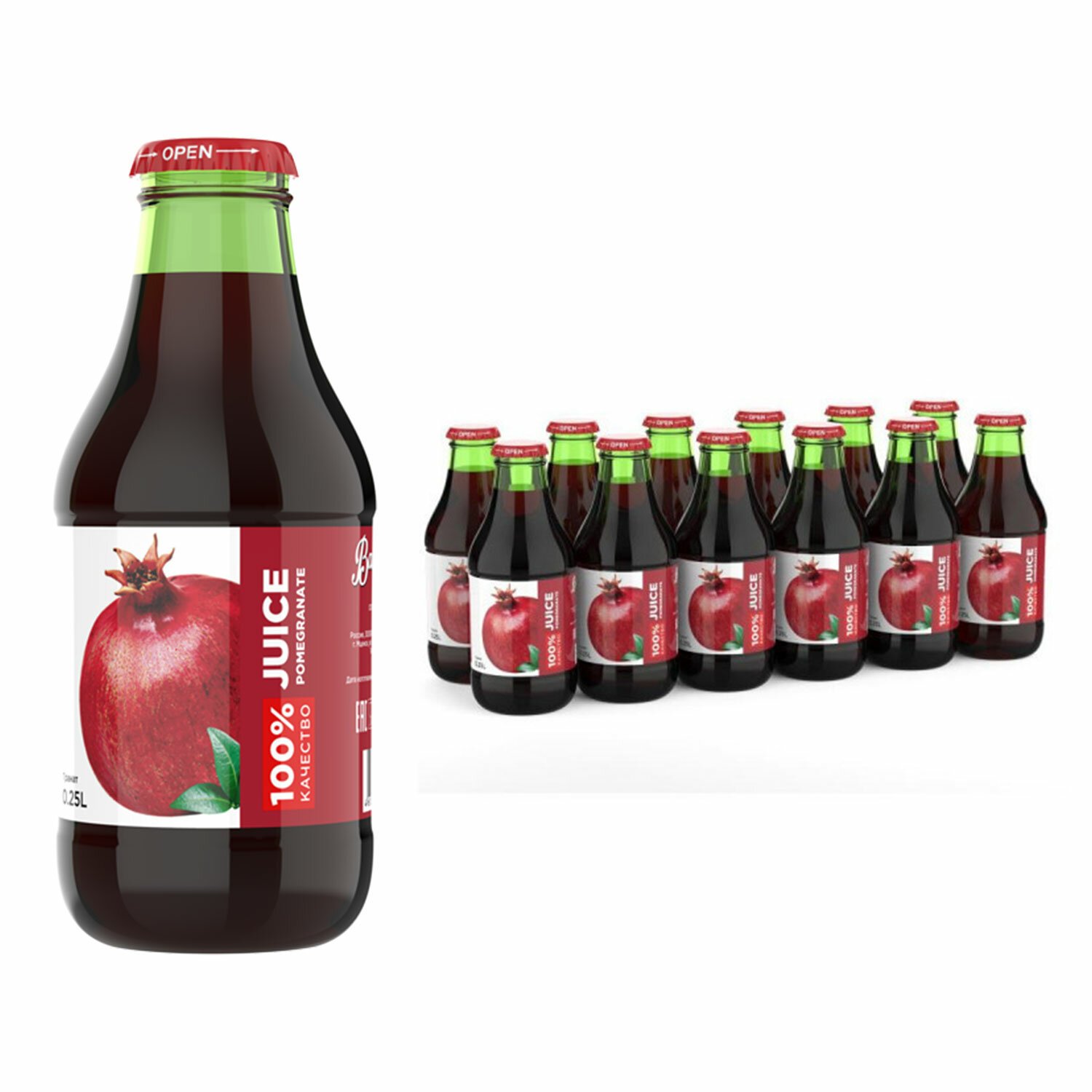 Сок BARINOFF Гранатовый, с сахаром, 0,25 л (12 штук в упаковке). Роскошный кисло-сладкий вкус спелого граната и его пьянящий чувственный аромат, заключенные в маленькую стеклянную бутылочку.