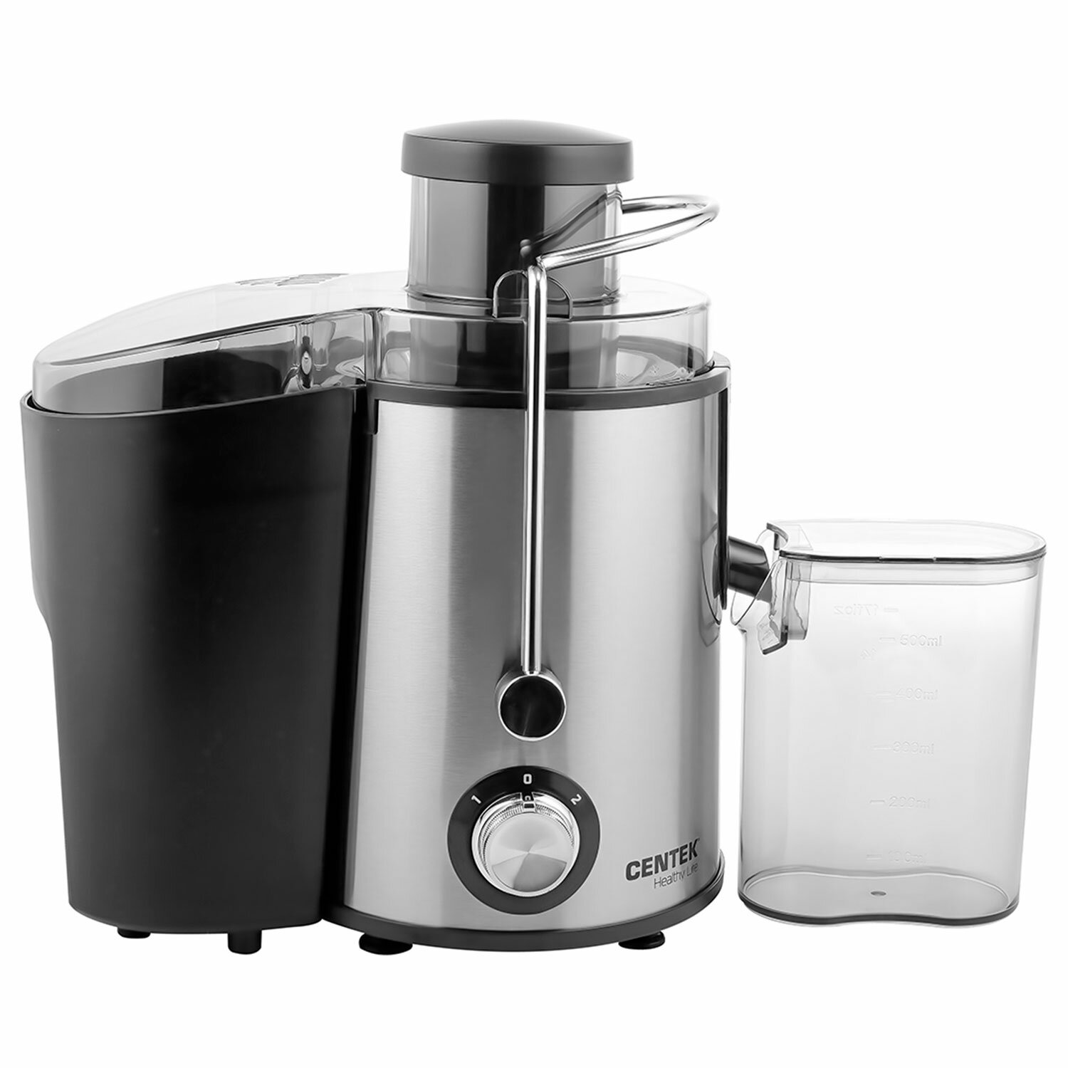 Соковыжималка CENTEK CT-1209, 600 Вт, стакан 0,5 л, емкость для жмыха 1,5 л, металл, сталь/черный