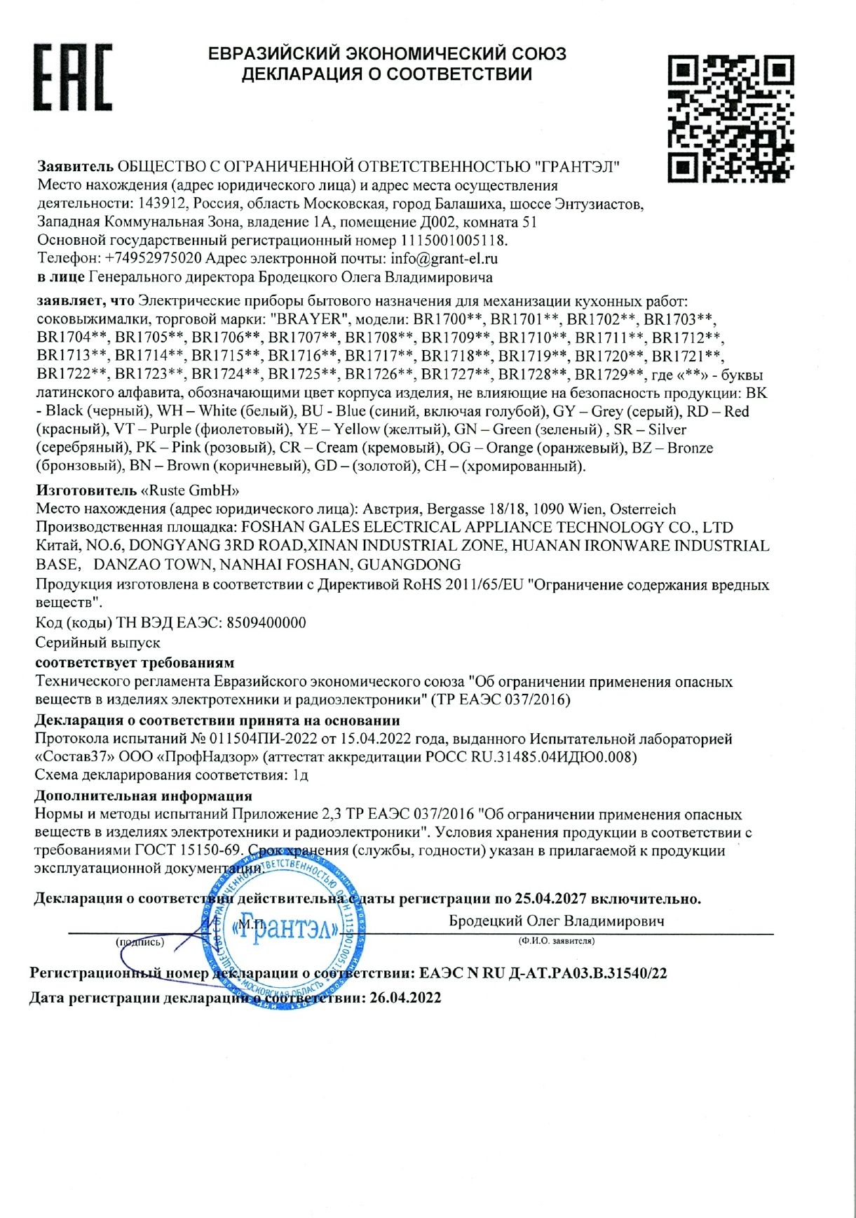 | Серия | BR1701 |