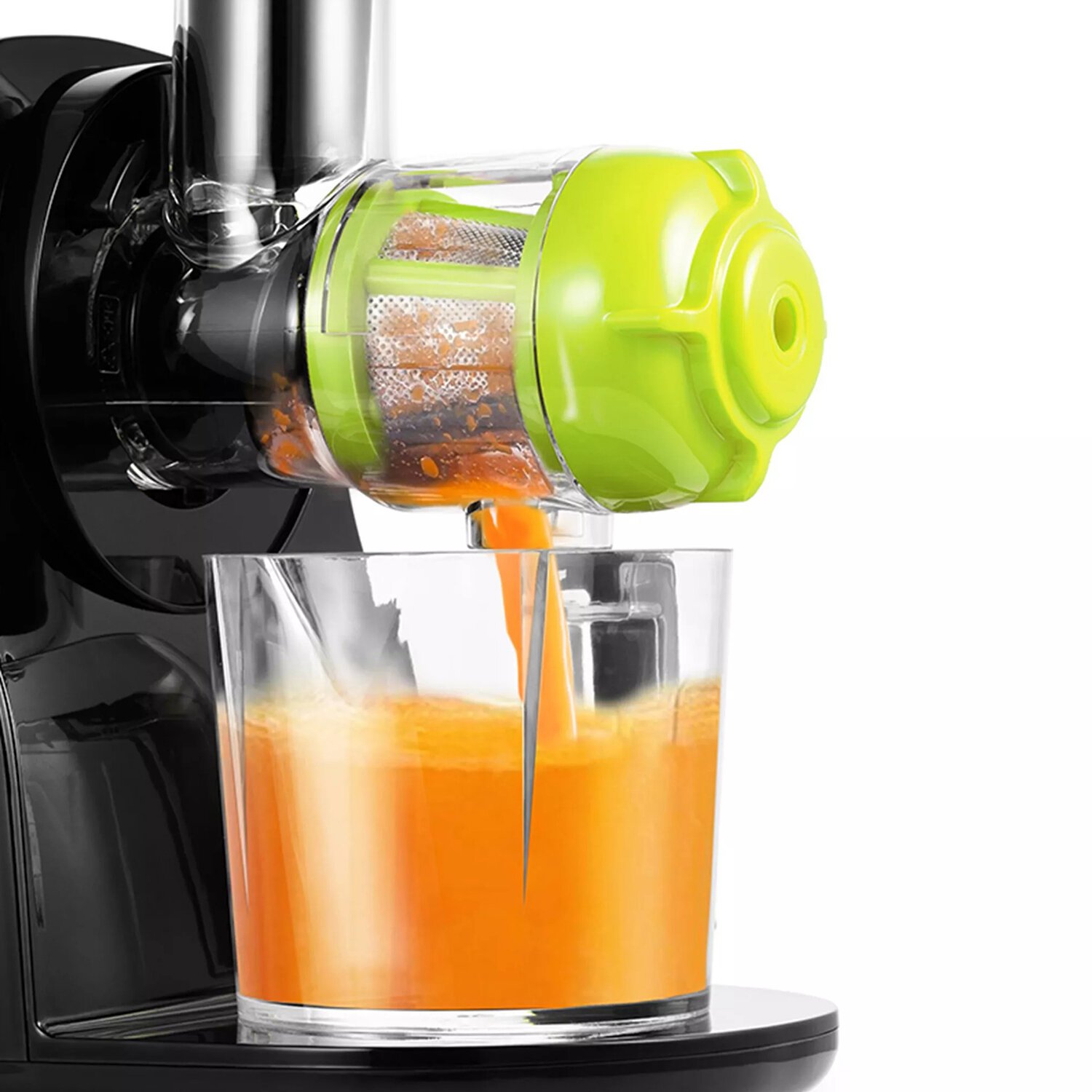В отличие от обычной центробежной высокоскоростной соковыжималки, работающей при 1000-24000 об/мин и потребляющей до 1500 Вт электроэнергии, шнековая соковыжималка работает на низких скоростях вращения, около 60-80 об/мин, и потребляет всего 150 Вт. Однако, несмотря на малую скорость вращения, шнековая соковыжималка отжимает сок так же быстро, как и традиционная центробежная. Спиралевидный шнек-пресс из ультрапрочного материала дробит и прессует продукт, а затем продавливает мякоть через фильтр, отделяемых от сока. Эта технология позволяет сохранить гораздо больше питательных веществ, содержащихся в овощах и фруктах, и получить сок с высоким содержанием клетчатки и растительных ферментов, являющихся природными антиоксидантами.