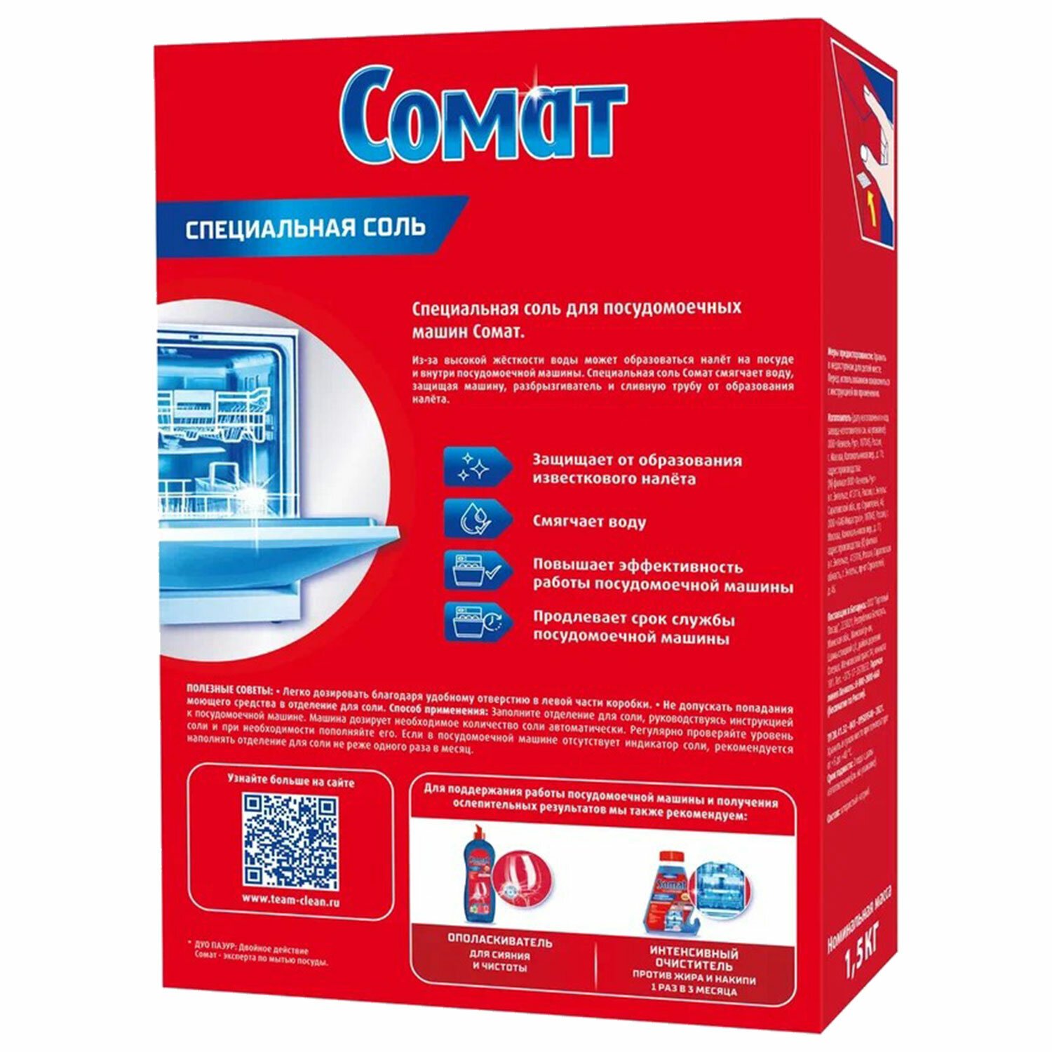 Соль от накипи в посудомоечных машинах 1,5 кг СОМАТ "5 действий", 2309124