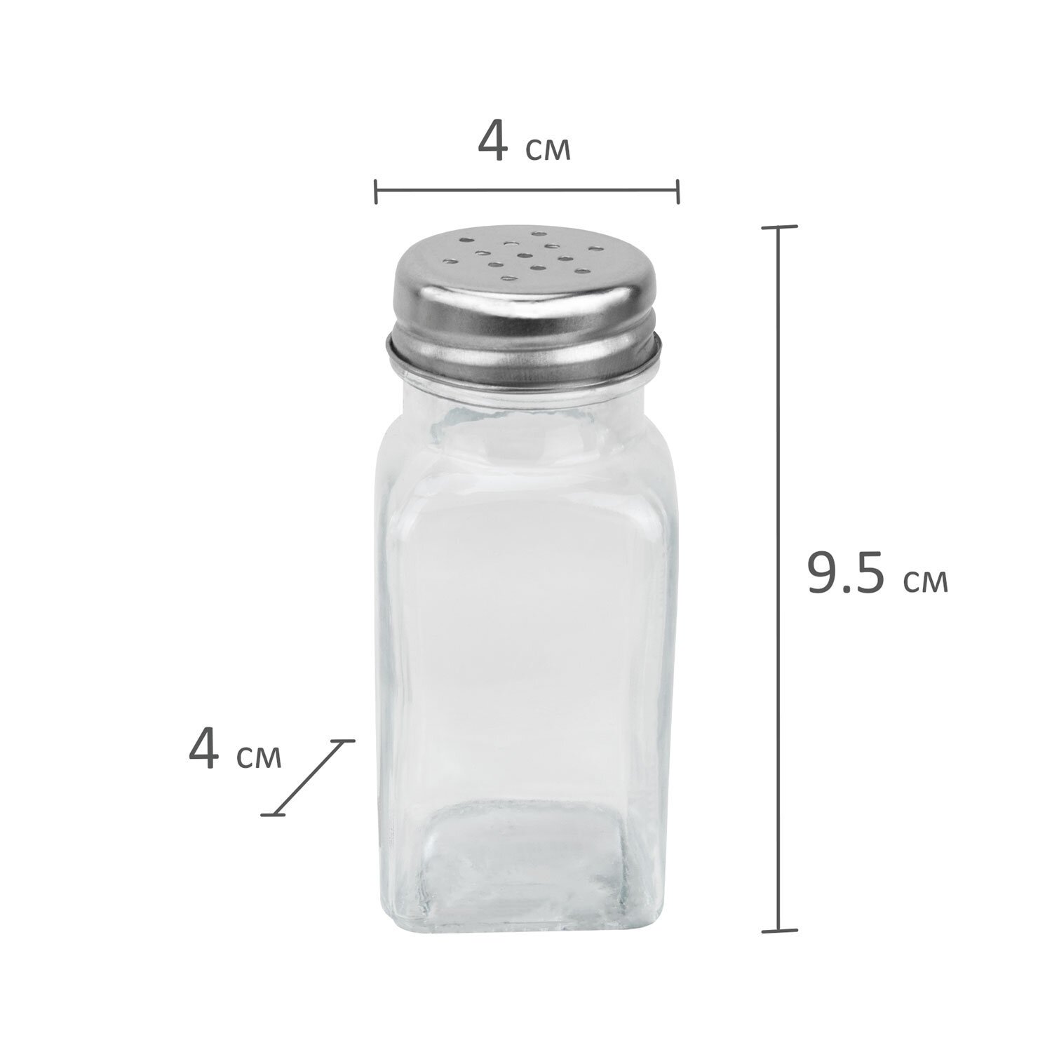 Емкость солонки выполнена из прозрачного пищевого стекла (натрий-кальций-силикатного), что позволяет видеть количество содержимого в емкости. Oбъем емкости составляет 80 мл (±5 мл). Изделие оснащено откручивающейся крышкой из нержавеющей стали с отверстиями, которые обеспечивают контролируемую порционную подачу специй.